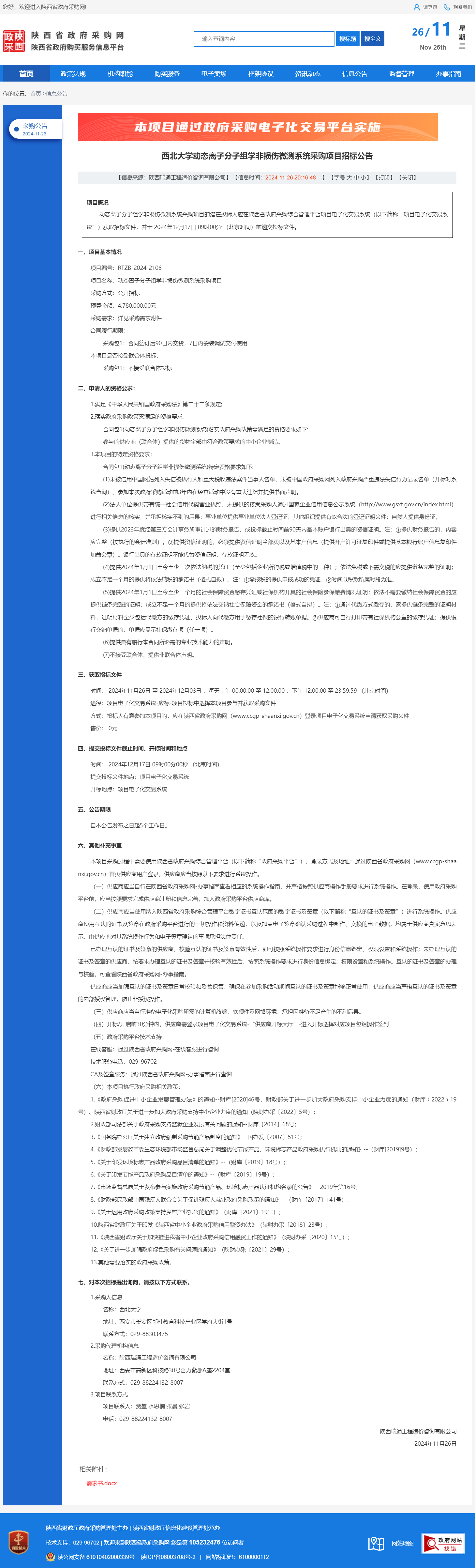 开云手机网页版登录入口动态离子分子组学非损伤微测系统采购项目招标公告 作者:采购与招标办公室 编辑: 时间:2024-11-26 原公告链接:http://www.ccgp-shaanxi.gov.cn/freecms/site/shaanxi/ggxx/info/2024/8a69c95d921859f00193685d31243738.html?noticeType=001011¬iceId=e6602f79-abf1-11ef-8063-08c0eb20c666