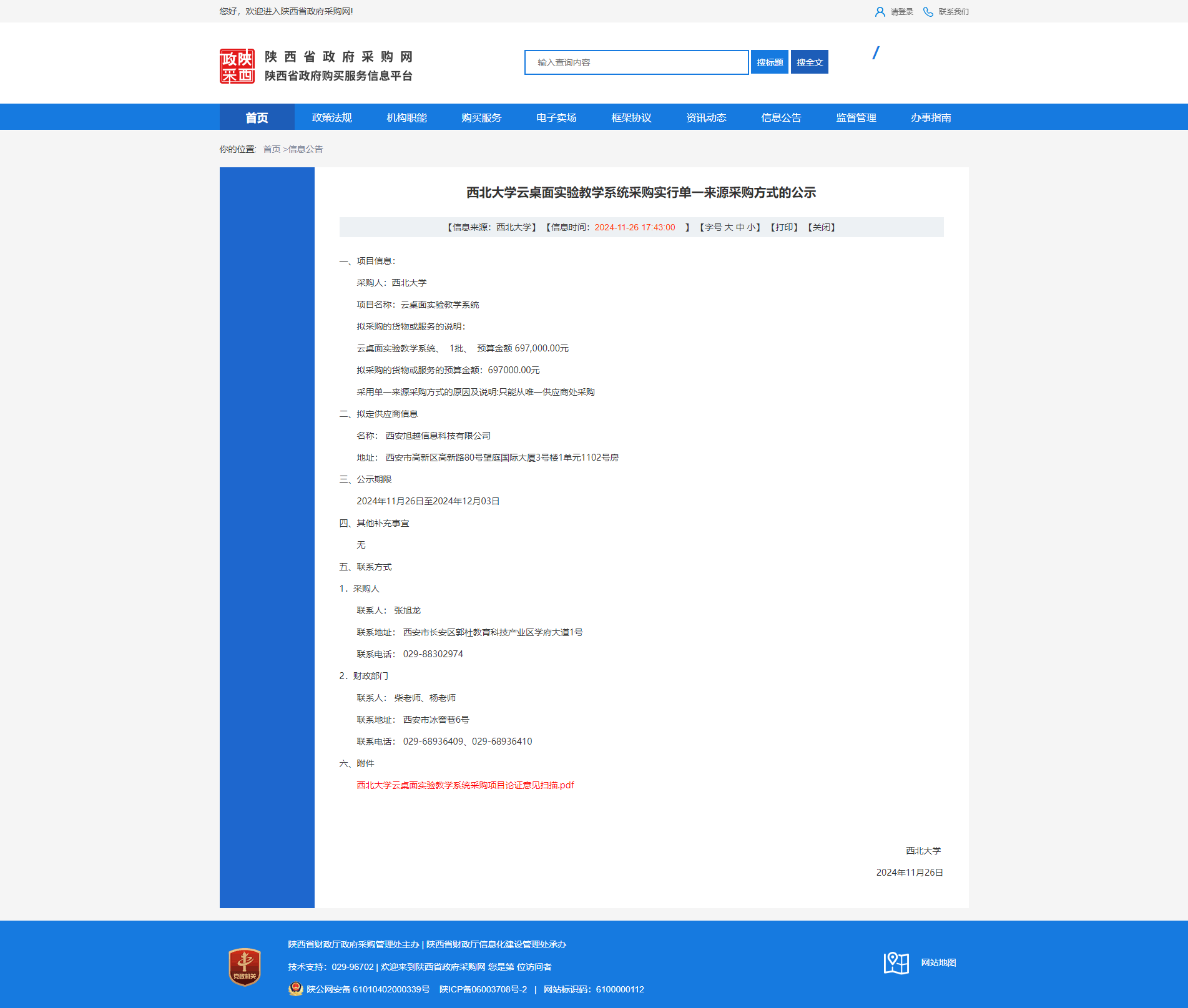 开云手机网页版登录入口云桌面实验教学系统采购实行单一来源采购方式的公示