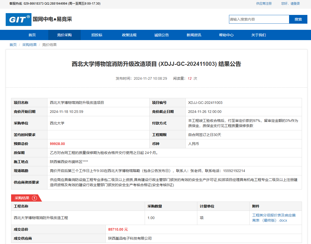 开云手机网页版登录入口博物馆消防升级改造项目(XDJJ-GC-202411003)竞价结果公告 作者:采购与招标办公室 编辑: 时间:2024-11-27 原公告链接:https://www.ejingcai.com.cn/site/bidding/detail/15427