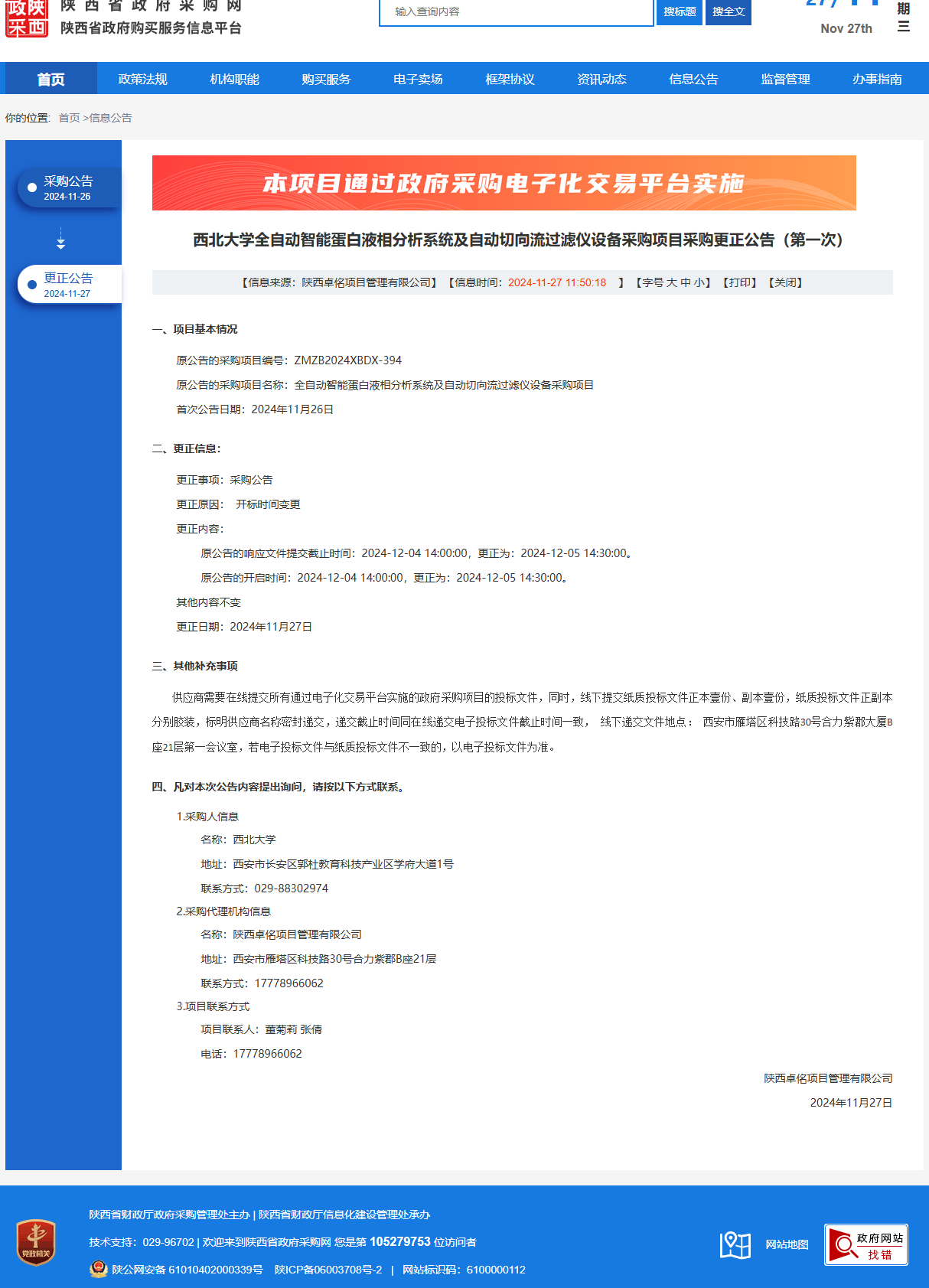 开云手机网页版登录入口全自动智能蛋白液相分析系统及自动切向流过滤仪设备采购项目采购更正公告 作者:采购与招标办公室 编辑: 时间:2024-11-27 原公告链接:https://www.ccgp-shaanxi.gov.cn/freecms/site/shaanxi/ggxx/info/2024/8a69c44e9218572b01936bbab7481f2c.html?noticeType=001031¬iceId=4f3bb739-ac74-11ef-8063-08c0eb20c666