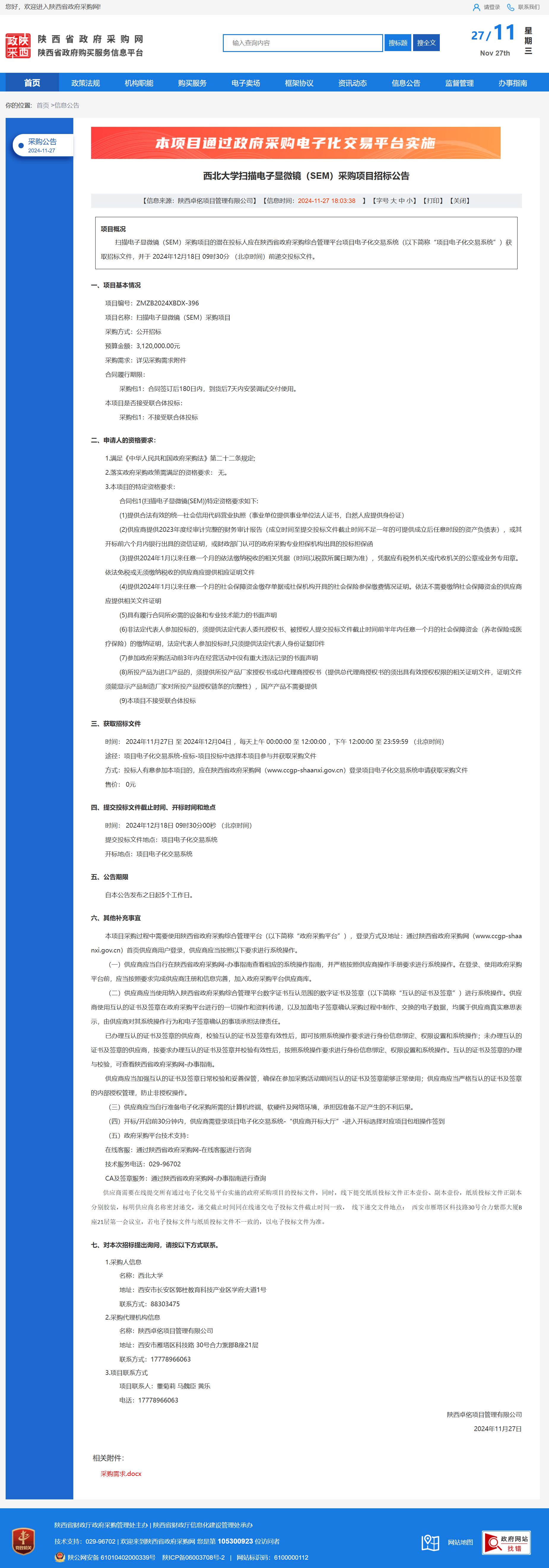 开云手机网页版登录入口扫描电子显微镜(SEM)采购项目招标公告 作者:采购与招标办公室 编辑: 时间:2024-11-27 原公告链接:https://www.ccgp-shaanxi.gov.cn/freecms/site/shaanxi/ggxx/info/2024/8a69c2519218573701936d0854fb38e9.html?noticeType=001011¬iceId=76c9ca4c-aca8-11ef-8063-08c0eb20c666