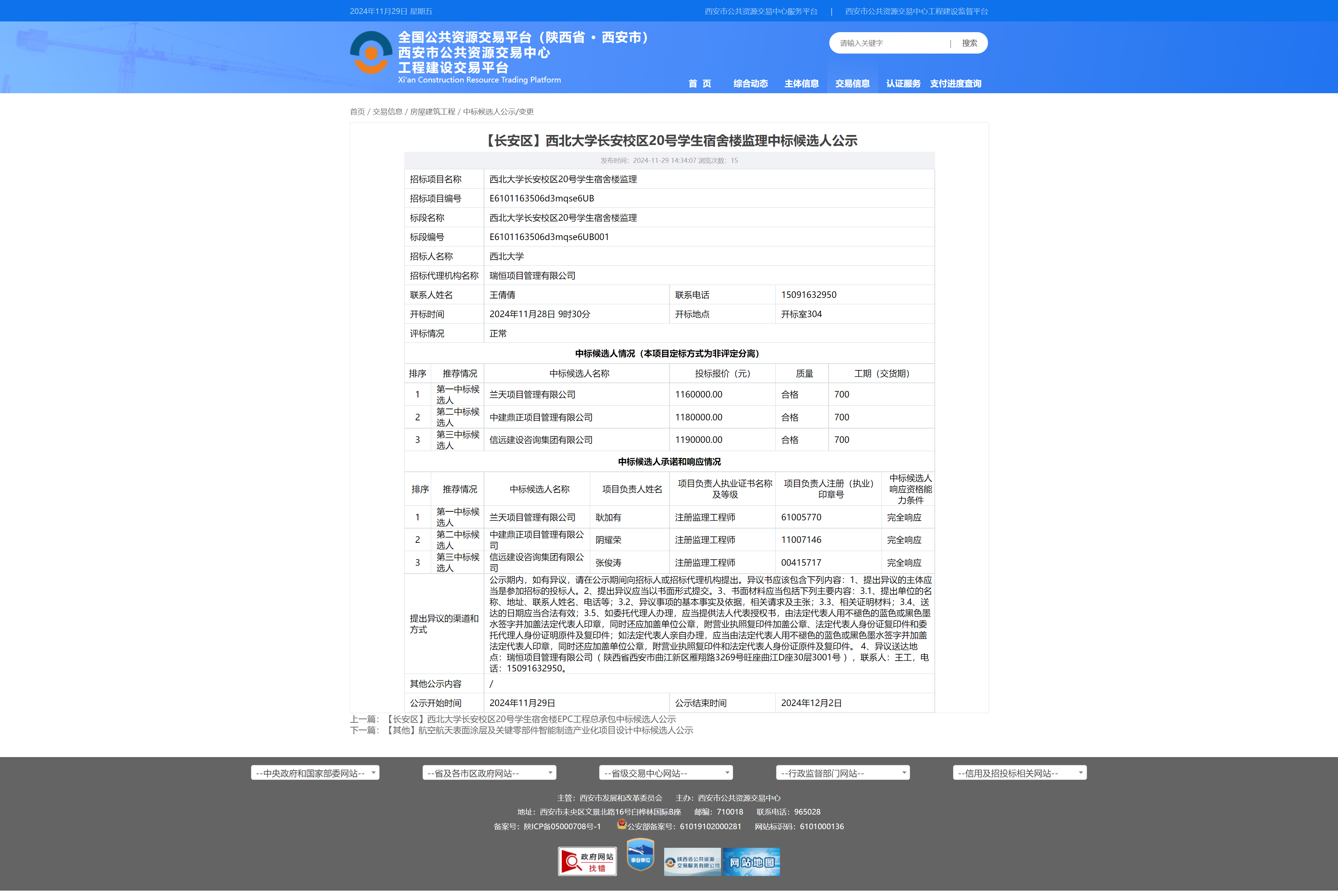 开云手机网页版登录入口长安校区20号学生宿舍楼监理中标候选人公示