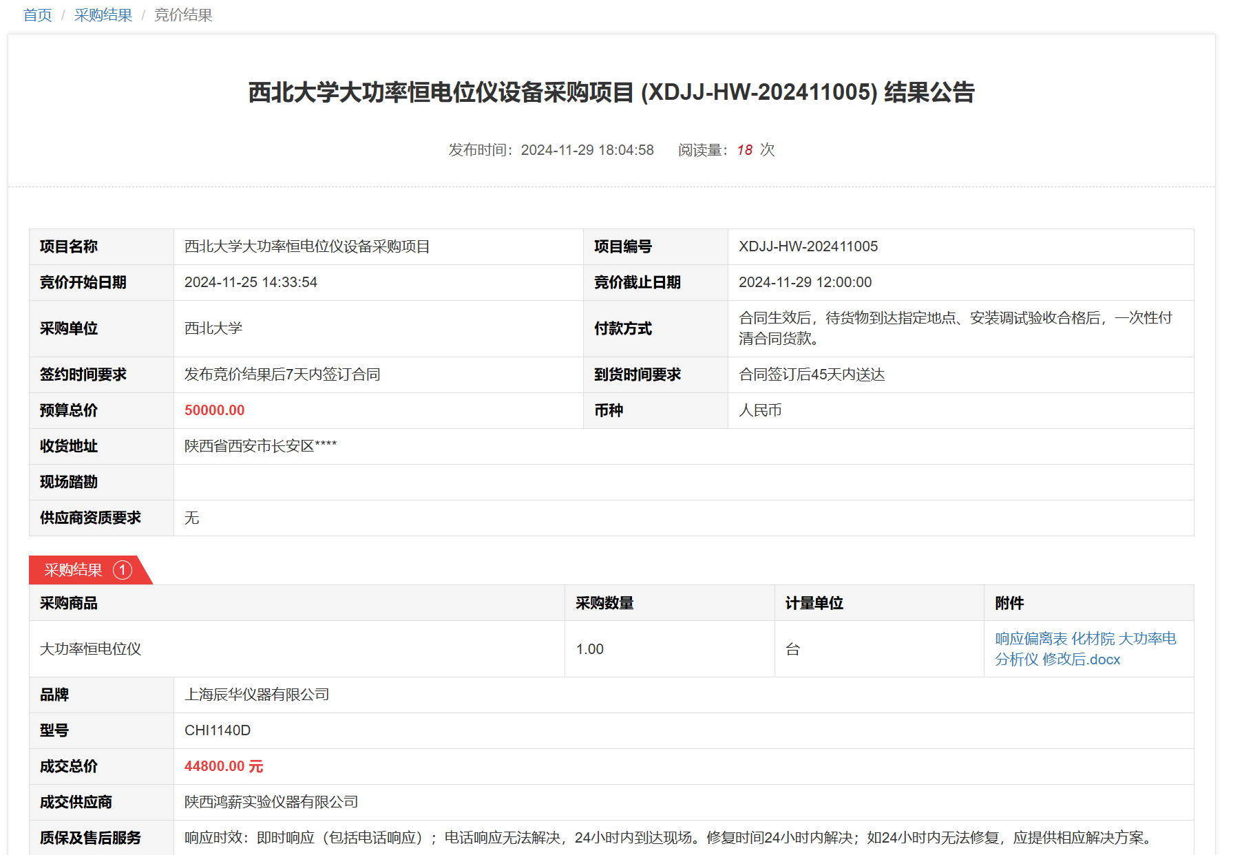 开云手机网页版登录入口大功率恒电位仪设备采购项目(XDJJ-HW-202411005)竞价结果公告 作者:采购与招标办公室 编辑: 时间:2024-11-29 原公告链接:https://www.ejingcai.com.cn/site/bidding/detail/15509
