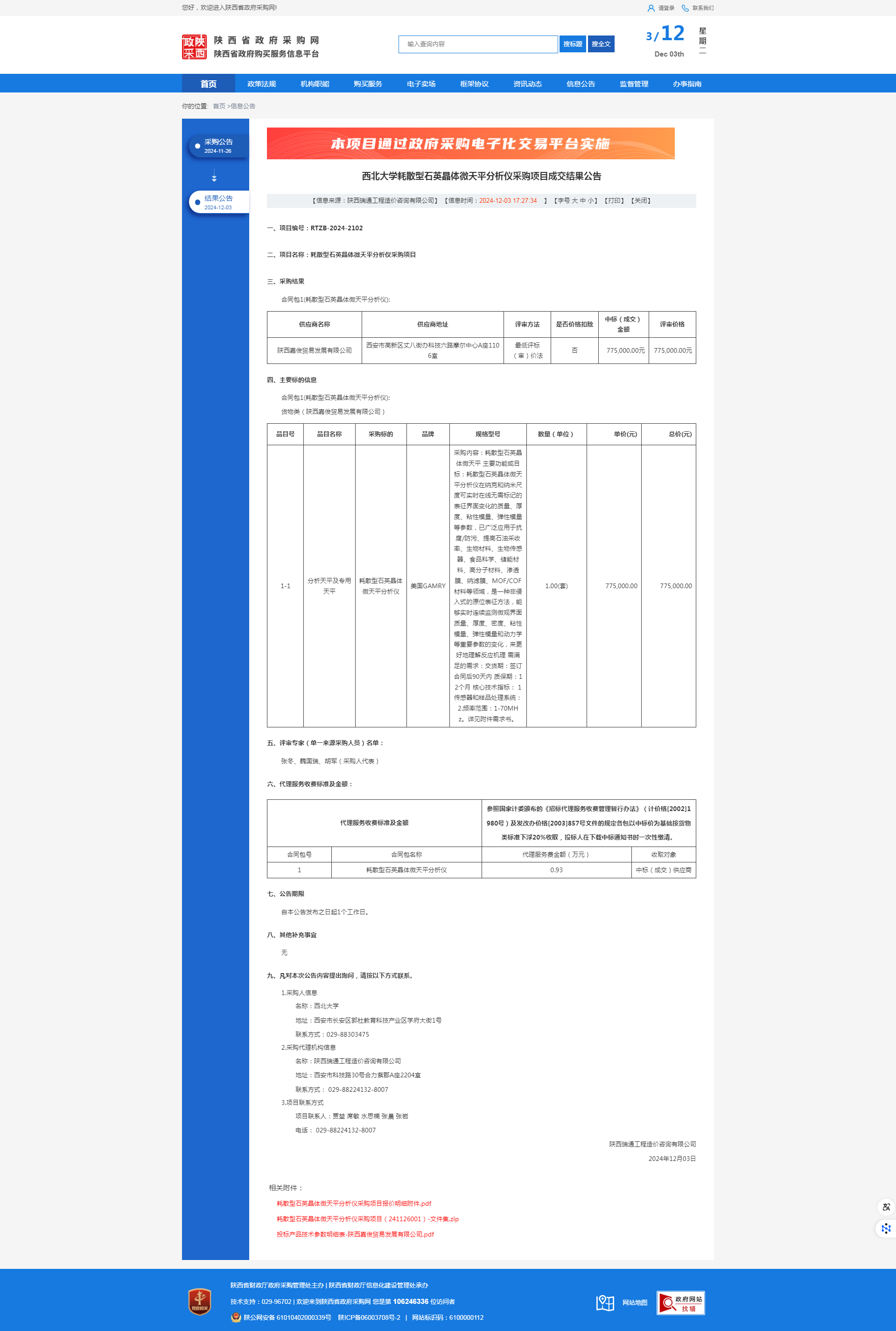 开云手机网页版登录入口耗散型石英晶体微天平分析仪采购项目成交结果公告 作者:采购与招标办公室 编辑: 时间:2024-12-03 原公告链接:https://www.ccgp-shaanxi.gov.cn/freecms/site/shaanxi/ggxx/info/2024/8a69c2519218573701938bc3ac1a16c6.html?noticeType=001023¬iceId=6e7b31eb-b15a-11ef-8063-08c0eb20c666