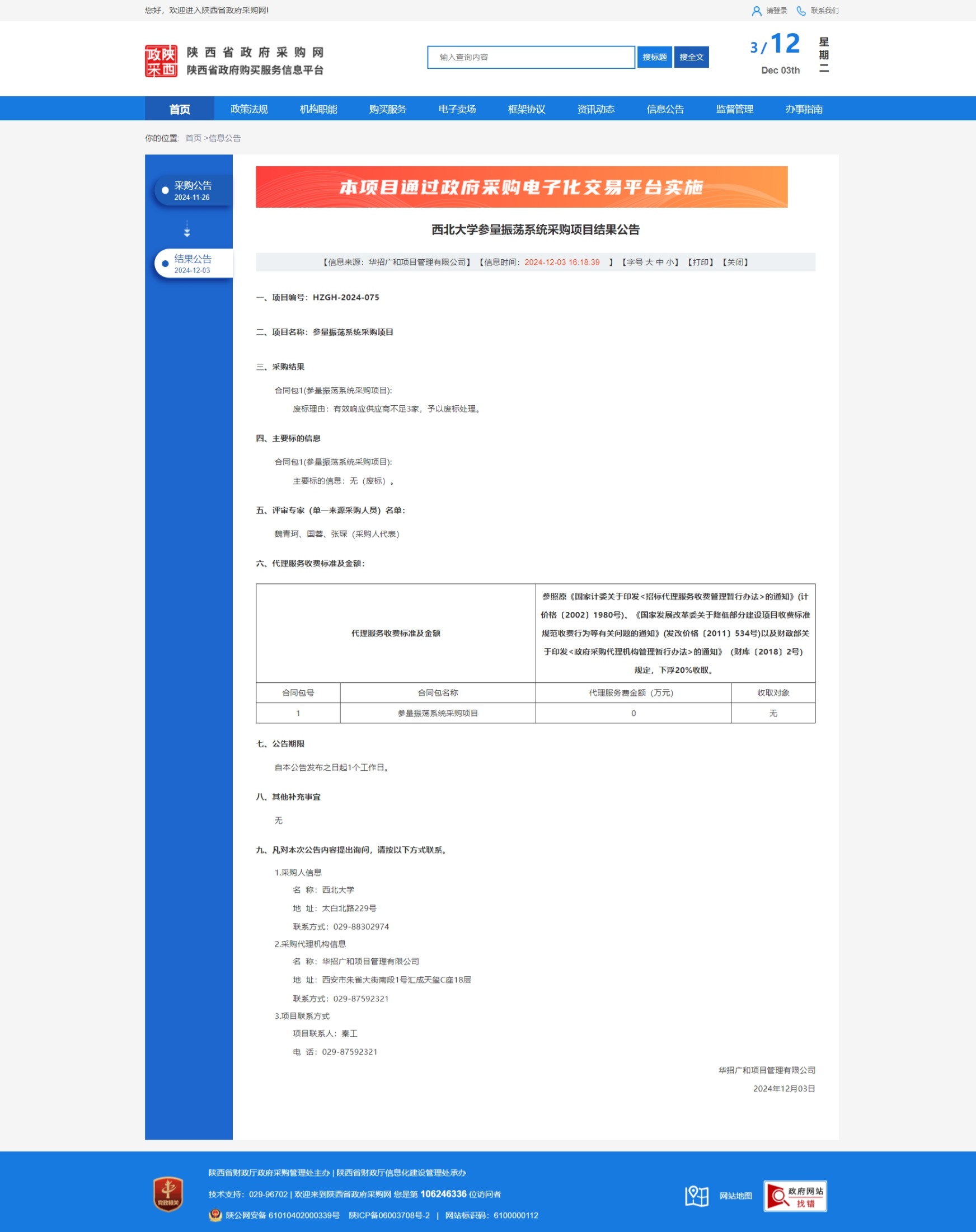 开云手机网页版登录入口参量振荡系统采购项目结果公告 作者: 编辑:薛利娟 时间:2024-12-03 原公告链接:https://www.ccgp-shaanxi.gov.cn/freecms/site/shaanxi/ggxx/info/2024/8a69c5a59218576d01938b94ca9e50df.html?noticeType=001006¬iceId=cdac4082-b150-11ef-8063-08c0eb20c666
