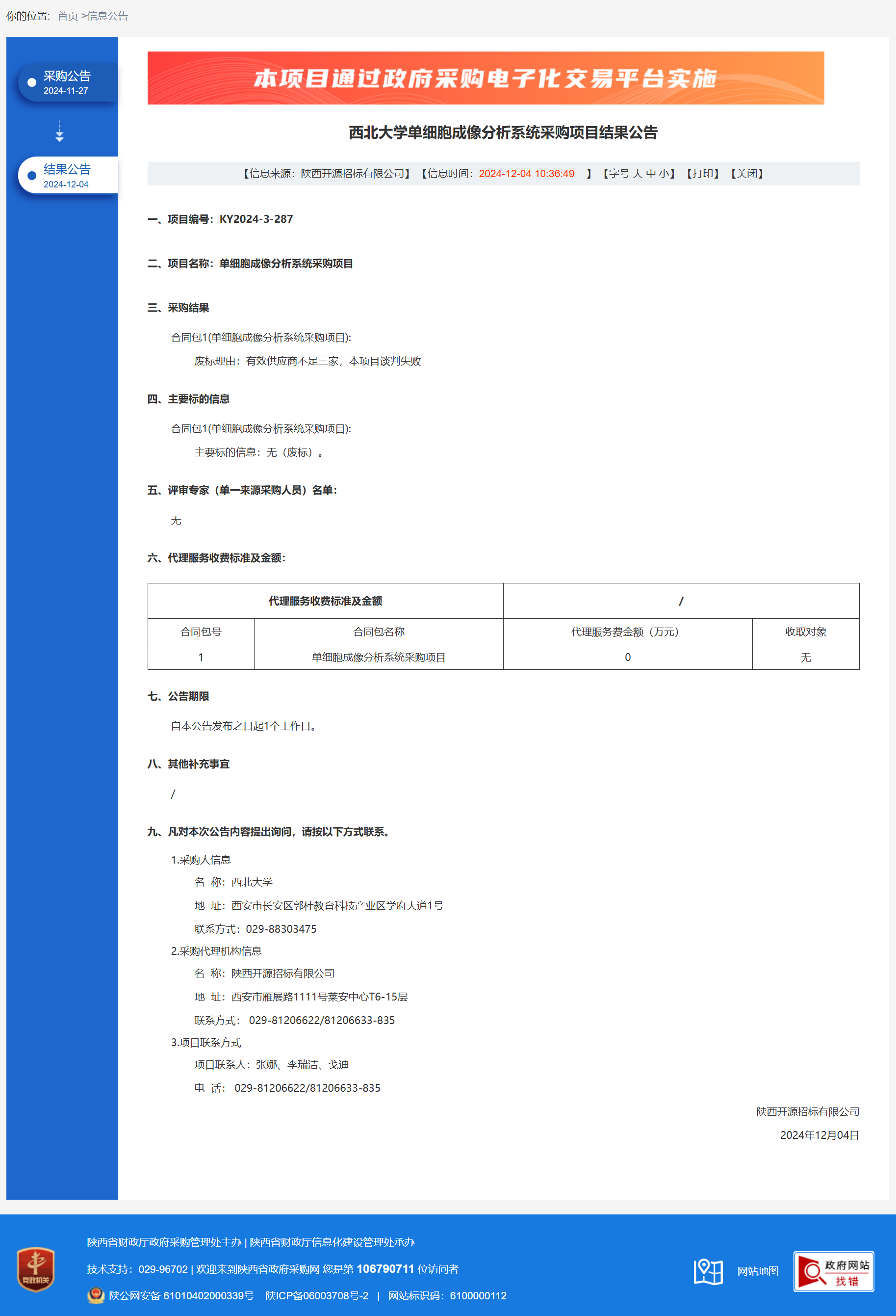 开云手机网页版登录入口单细胞成像分析系统采购项目结果公告 作者:采购与招标办公室 编辑: 时间:2024-12-04 原公告链接:https://www.ccgp-shaanxi.gov.cn/freecms/site/shaanxi/ggxx/info/2024/8a69c2519218573701938f5b22ae4a5a.html?noticeType=001006¬iceId=379ded18-b1ea-11ef-8063-08c0eb20c666