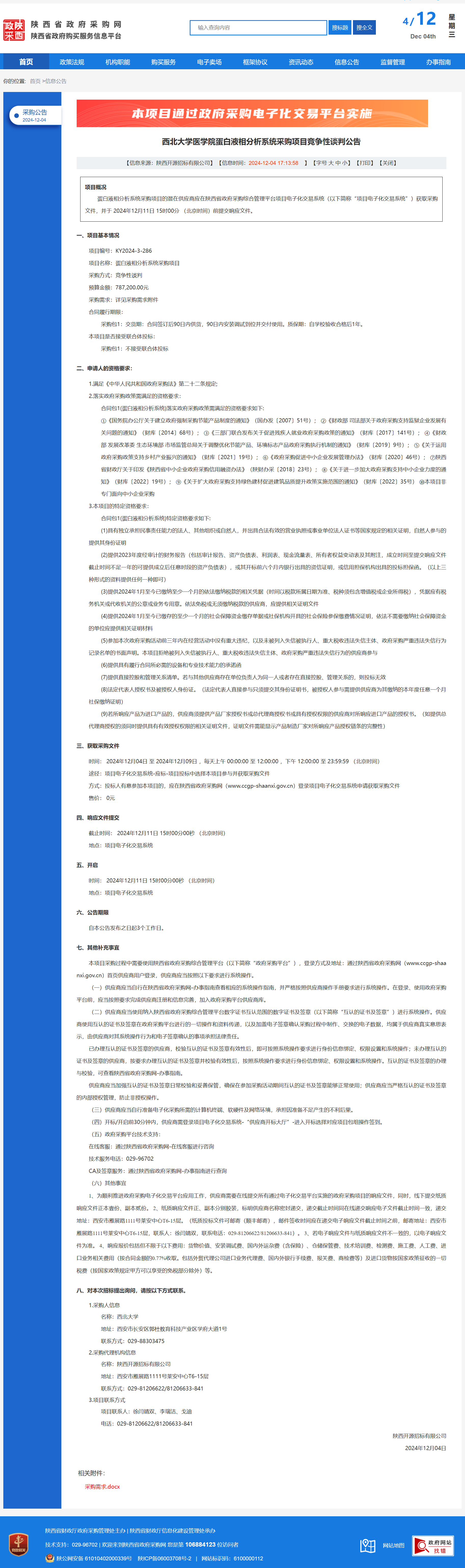开云手机网页版登录入口医学院蛋白液相分析系统采购项目竞争性谈判公告 作者:采购与招标办公室 编辑: 时间:2024-12-04 原公告链接:https://www.ccgp-shaanxi.gov.cn/freecms/site/shaanxi/ggxx/info/2024/8a69c25192185737019390c312de08f0.html?noticeType=001013¬iceId=b3194844-b221-11ef-8063-08c0eb20c666