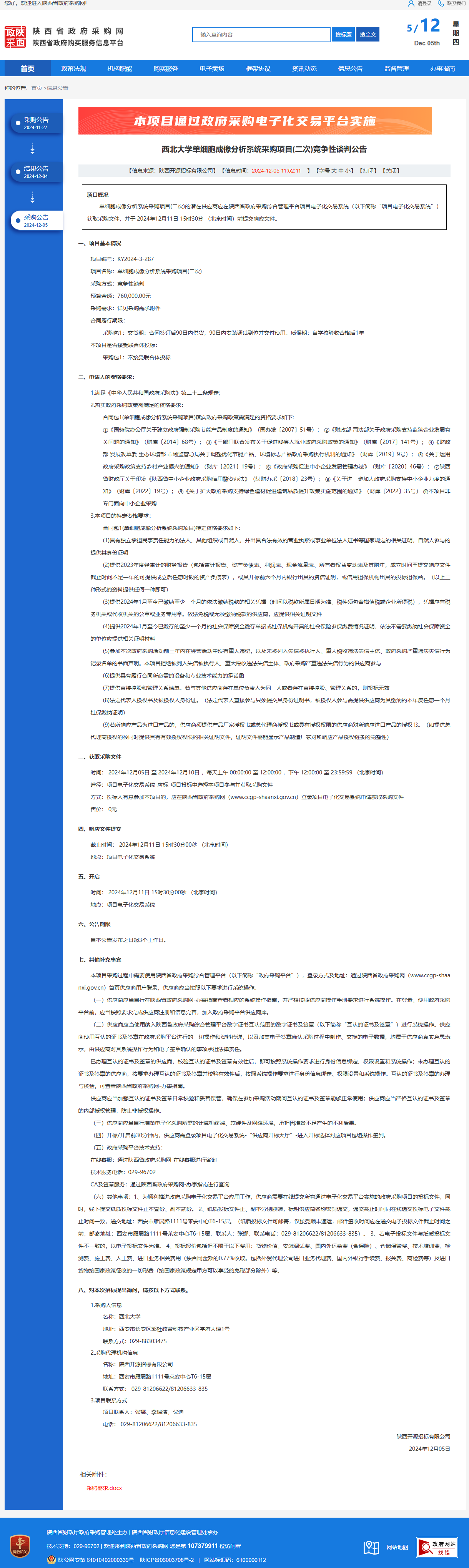 开云手机网页版登录入口单细胞成像分析系统采购项目(二次)竞争性谈判公告 作者:采购与招标办公室 编辑: 时间:2024-12-05 原公告链接:https://www.ccgp-shaanxi.gov.cn/freecms/site/shaanxi/ggxx/info/2024/8a69c251921857370193912b91403442.html?noticeType=001013¬iceId=e9b719c8-b2bd-11ef-8063-08c0eb20c666