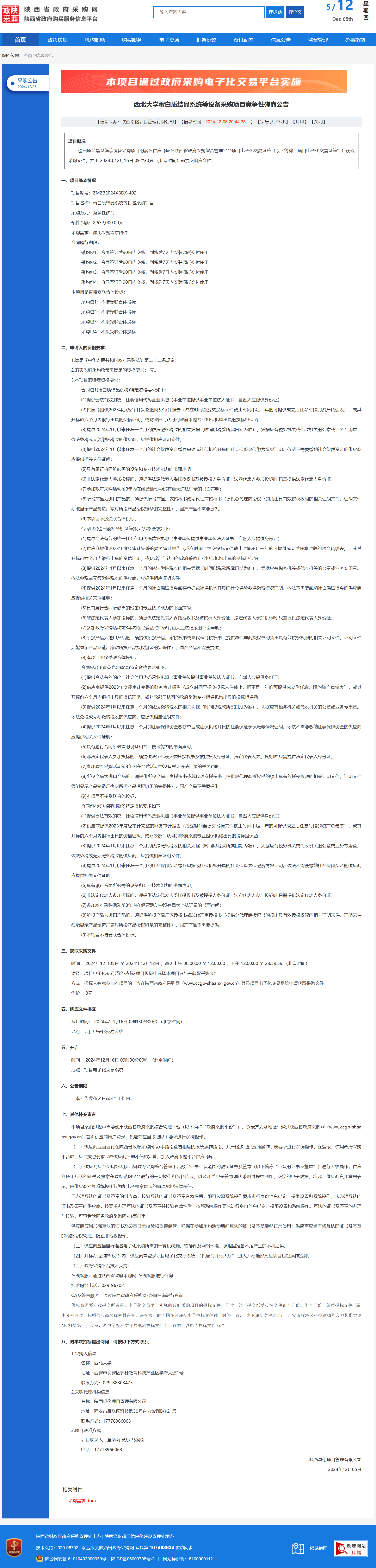 开云手机网页版登录入口蛋白质结晶系统等设备采购项目竞争性磋商公告 作者:采购与招标办公室 编辑: 时间:2024-12-05 原公告链接:https://www.ccgp-shaanxi.gov.cn/freecms/site/shaanxi/ggxx/info/2024/8a69c5a59218576d019396cdb04e04be.html?noticeType=001016¬iceId=4a7b03e9-b308-11ef-8063-08c0eb20c666