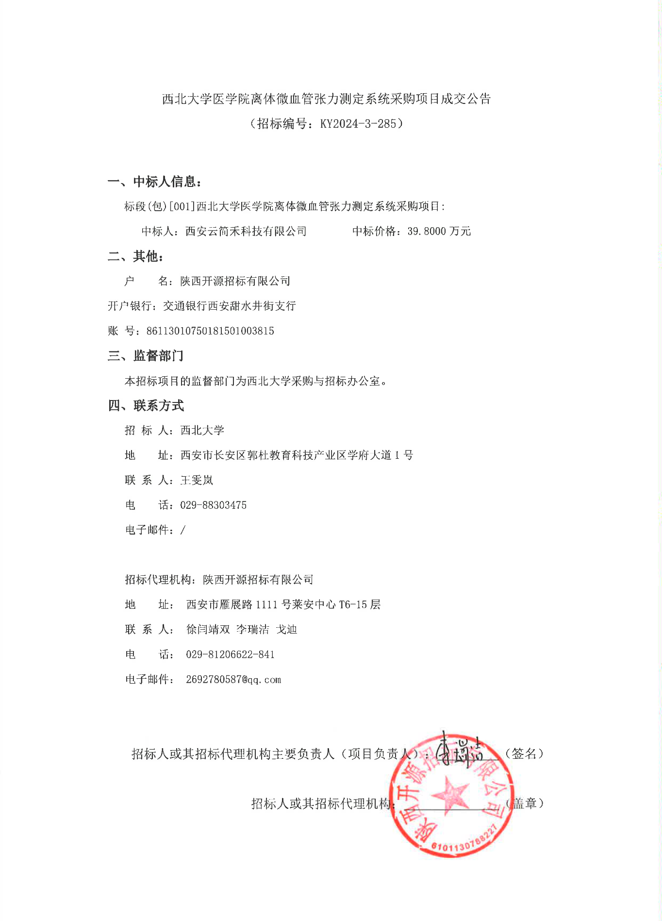 开云手机网页版登录入口医学院离体微血管张力测定系统采购项目成交公告 作者:采购与招标办公室 编辑: 时间:2024-12-06 原公告链接:http://bulletin.sntba.com/resultBulletin/2024-12-06/1994392.html