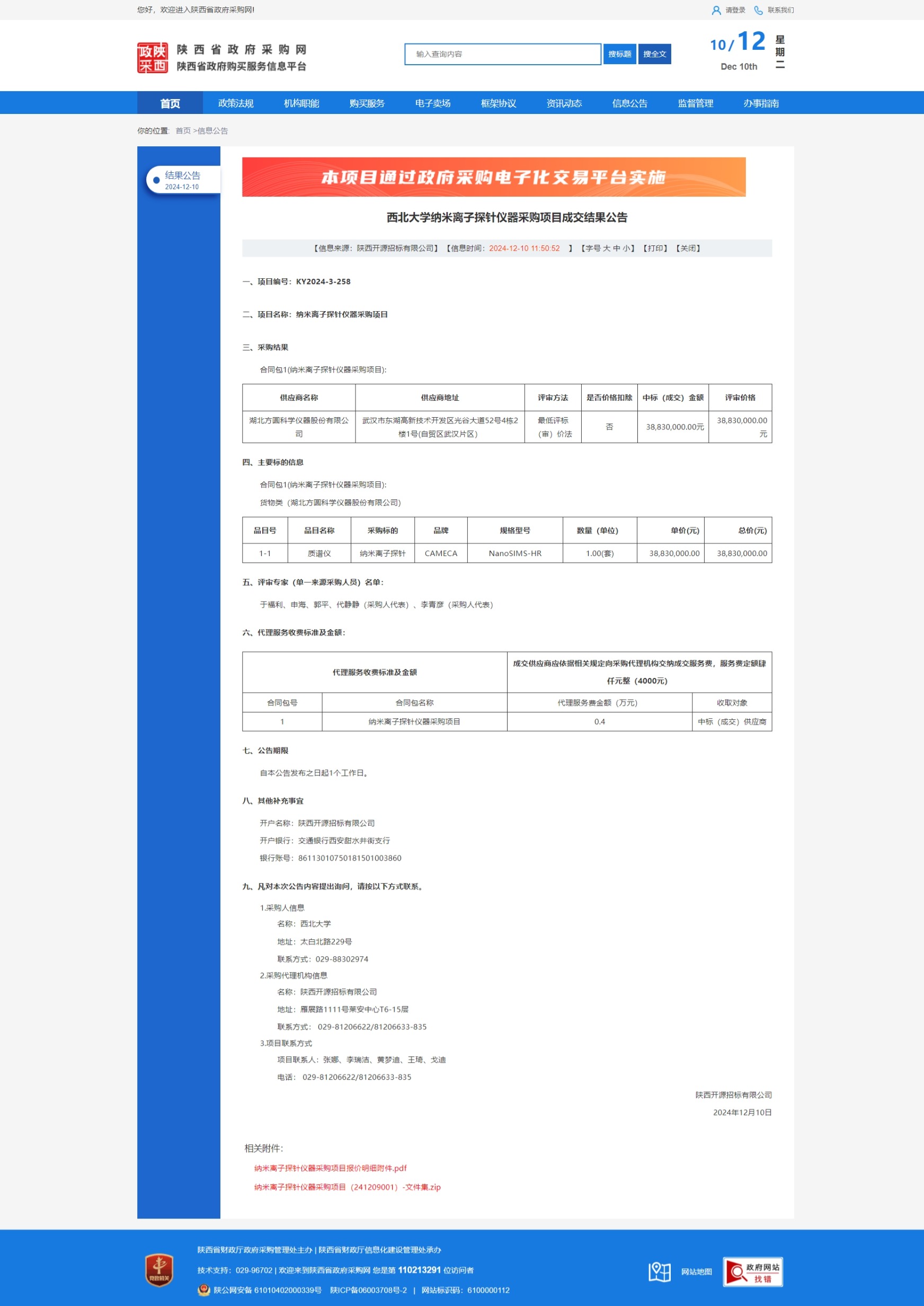 开云手机网页版登录入口纳米离子探针仪器采购项目成交结果公告 作者: 编辑:薛利娟 时间:2024-12-10 原公告链接:https://www.ccgp-shaanxi.gov.cn/freecms/site/shaanxi/ggxx/info/2024/8a69c5a59218576d0193aea3717402eb.html?noticeType=001025¬iceId=917c05e9-b6ab-11ef-8063-08c0eb20c666