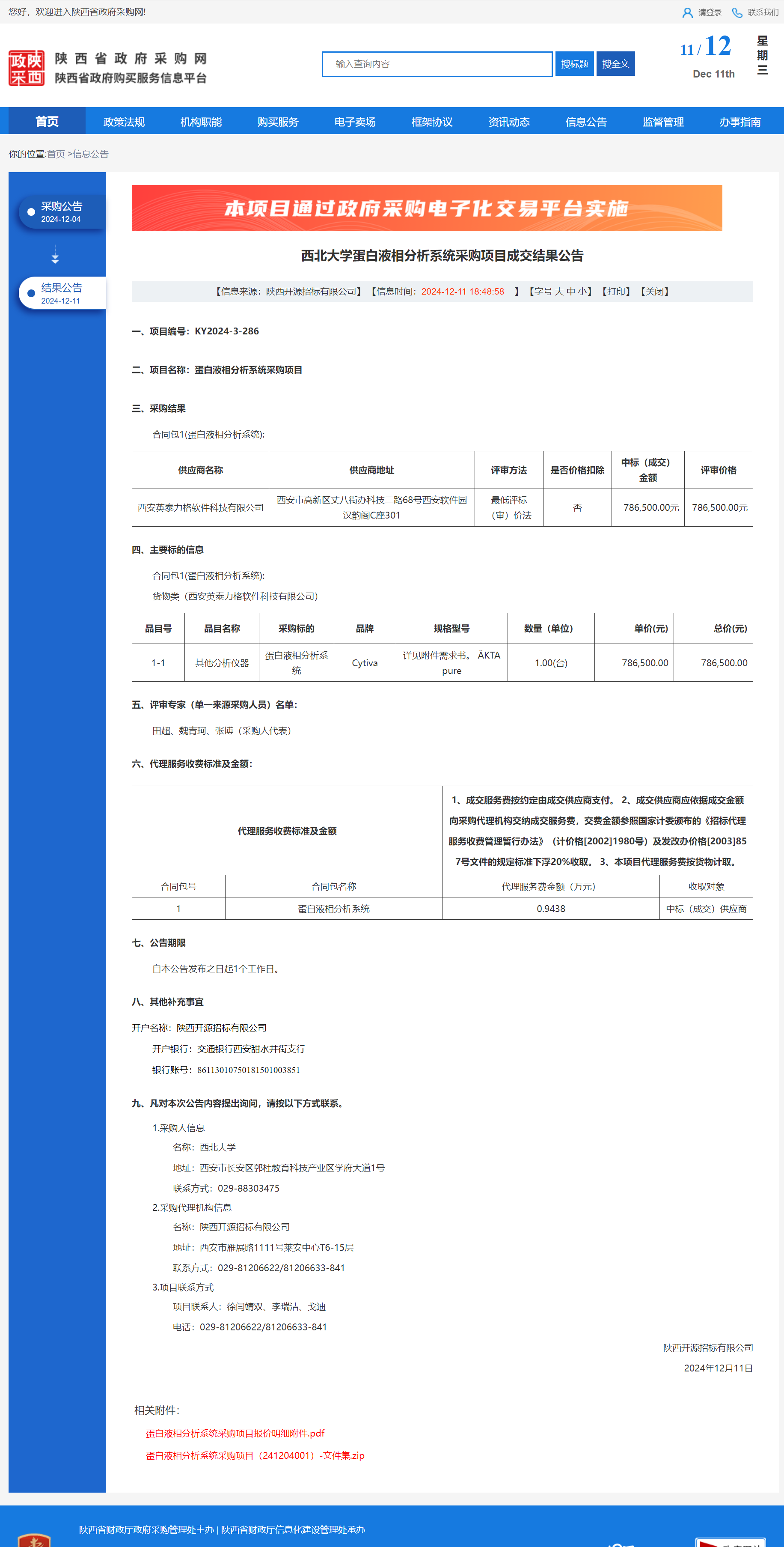 开云手机网页版登录入口蛋白液相分析系统采购项目成交结果公告 作者:采购与招标办公室 编辑: 时间:2024-12-11 原公告链接:https://www.ccgp-shaanxi.gov.cn/freecms/site/shaanxi/ggxx/info/2024/8a69c5a59218576d0193b5311e001b2d.html?noticeType=001023¬iceId=24caaa3b-b7af-11ef-8063-08c0eb20c666