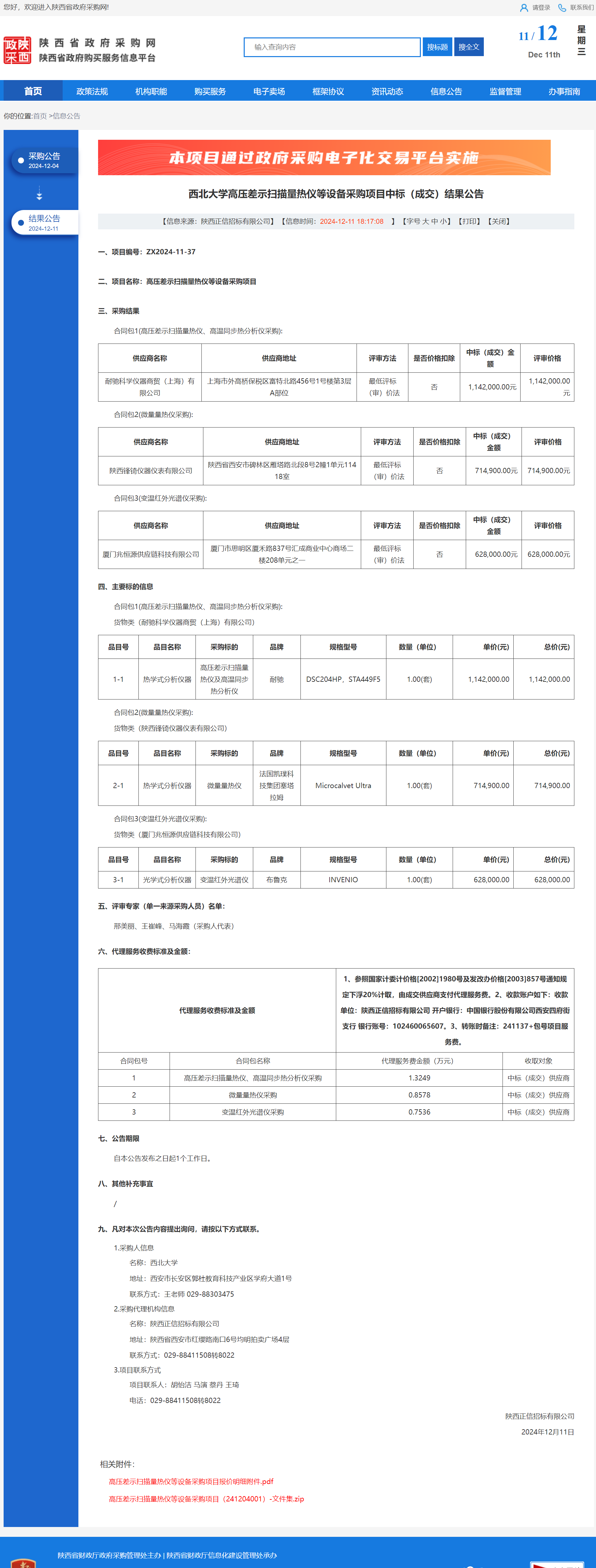 开云手机网页版登录入口高压差示扫描量热仪等设备采购项目中标(成交)结果公告 作者:采购与招标办公室 编辑: 时间:2024-12-11 原公告链接:https://www.ccgp-shaanxi.gov.cn/freecms/site/shaanxi/ggxx/info/2024/8a69c44e9218572b0193b4b4345f2fdb.html?noticeType=001023¬iceId=b2939b12-b7aa-11ef-8063-08c0eb20c666