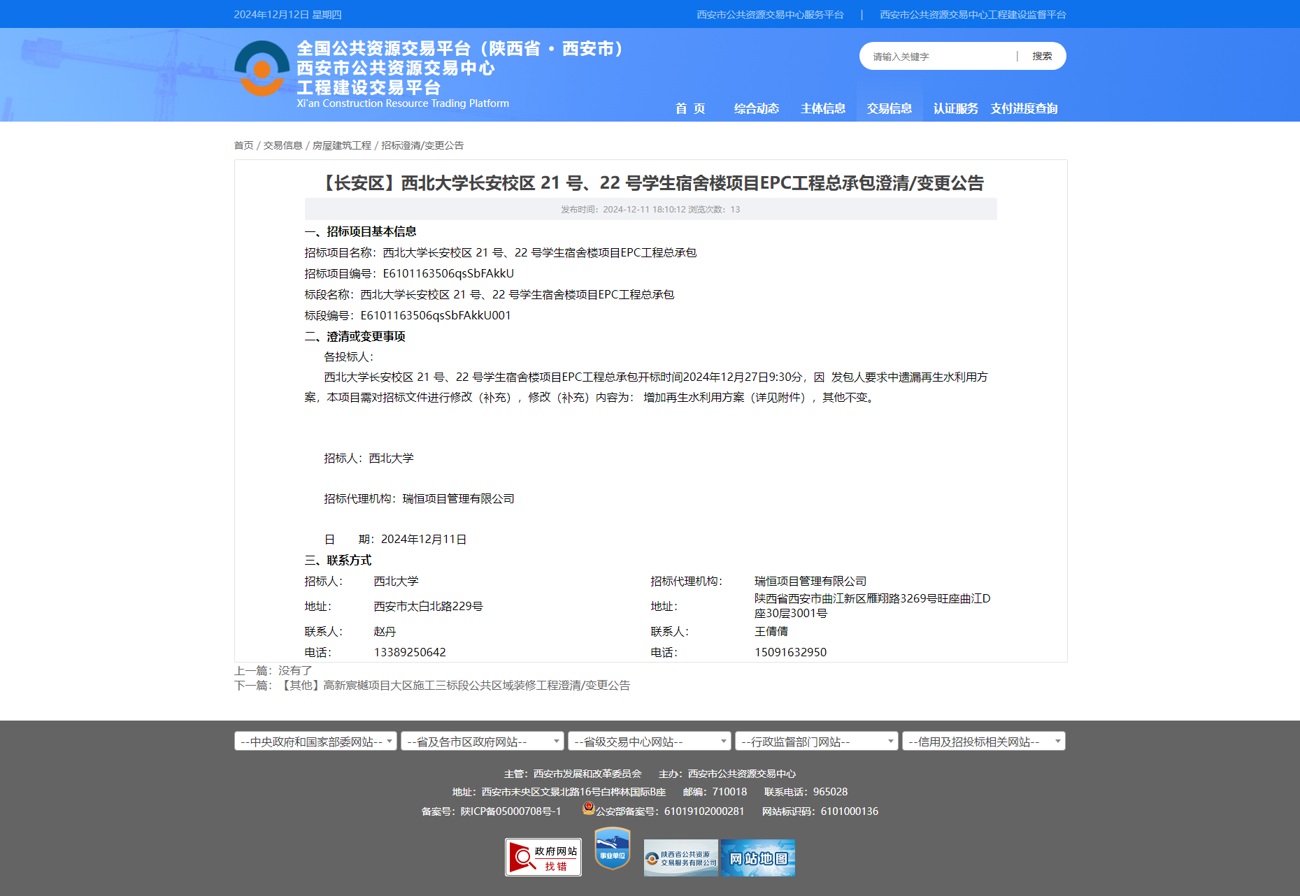 开云手机网页版登录入口长安校区 21 号、22 号学生宿舍楼项目EPC工程总承包澄清/变更公告