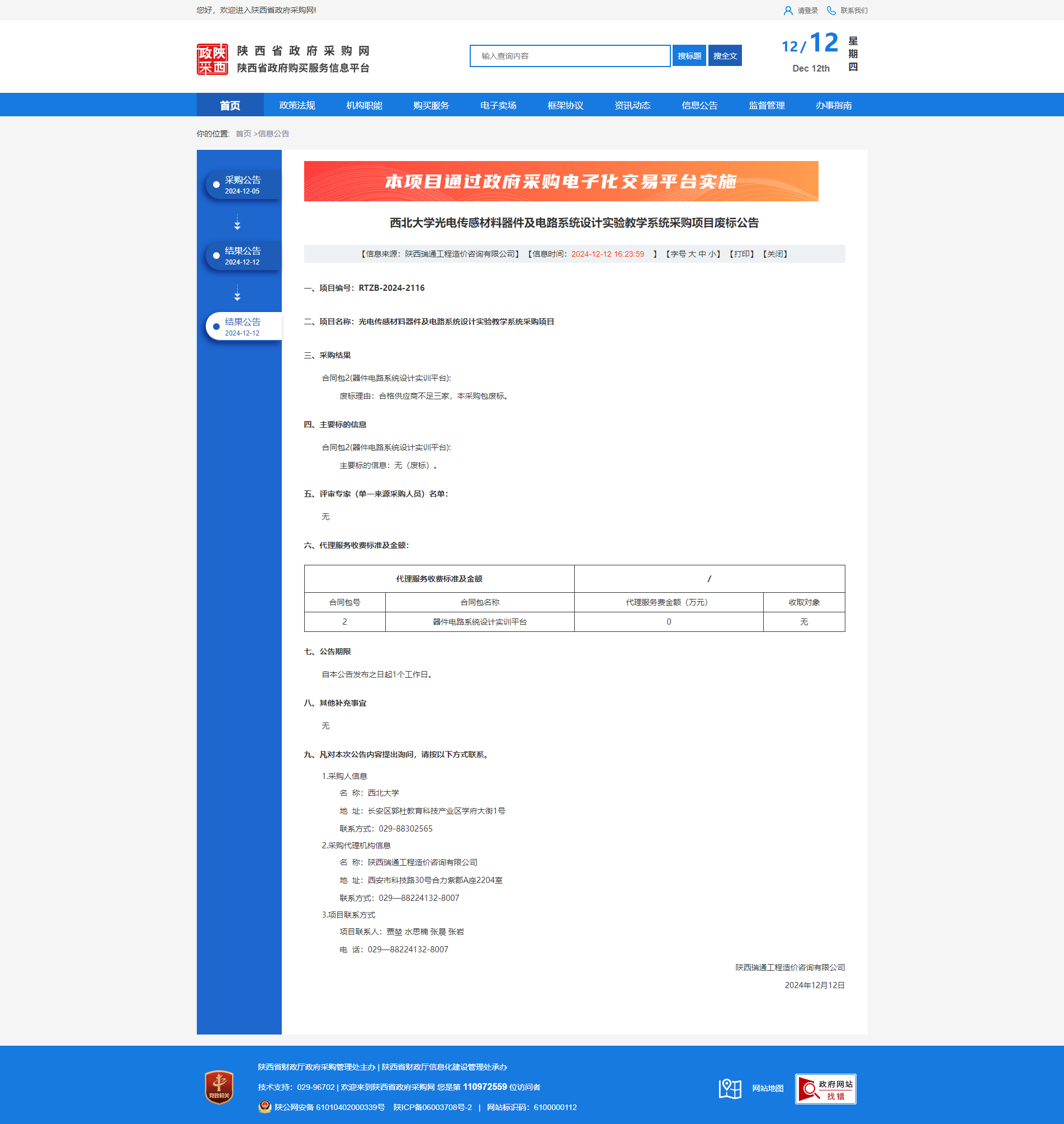 开云手机网页版登录入口光电传感材料器件及电路系统设计实验教学系统采购项目中标(成交)结果公告