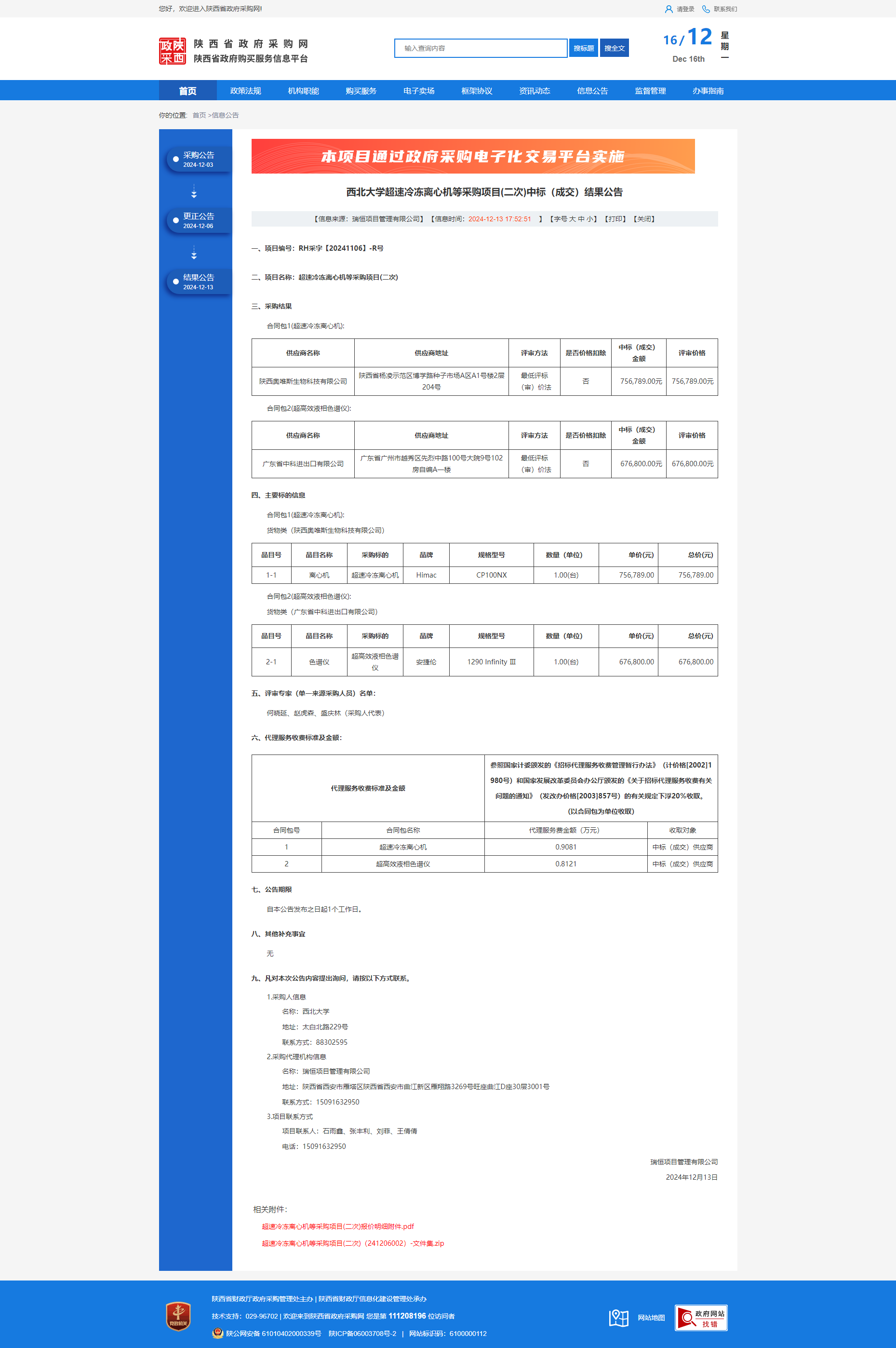 开云手机网页版登录入口超速冷冻离心机等采购项目(二次)中标(成交)结果公告