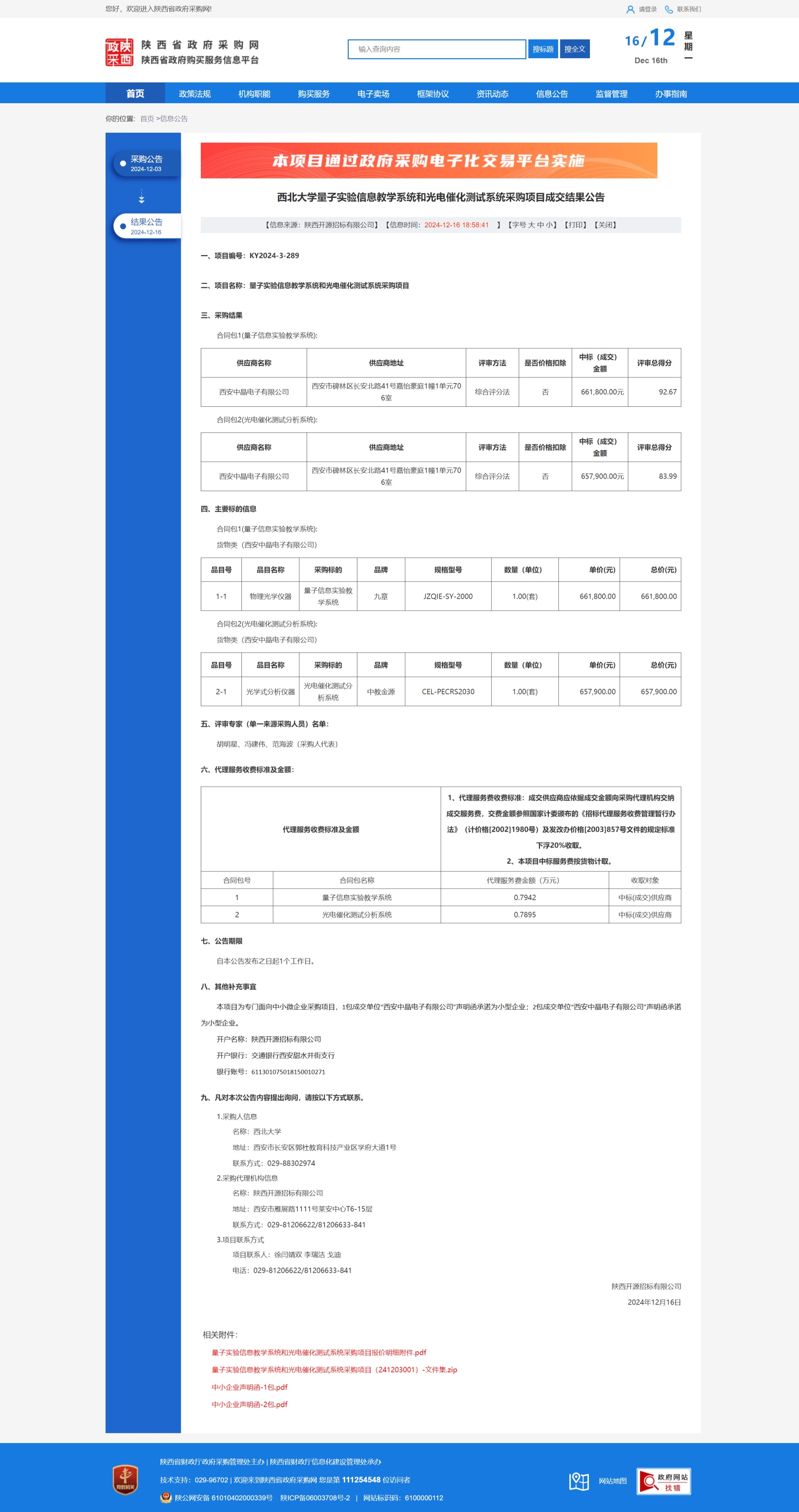 开云手机网页版登录入口量子实验信息教学系统和光电催化测试系统采购项目成交结果公告 作者: 编辑:薛利娟 时间:2024-12-16 原公告链接:https://www.ccgp-shaanxi.gov.cn/freecms/site/shaanxi/ggxx/info/2024/8a69c251921857370193cef385563c31.html?noticeType=001026¬iceId=56e31f18-bb9e-11ef-8063-08c0eb20c666