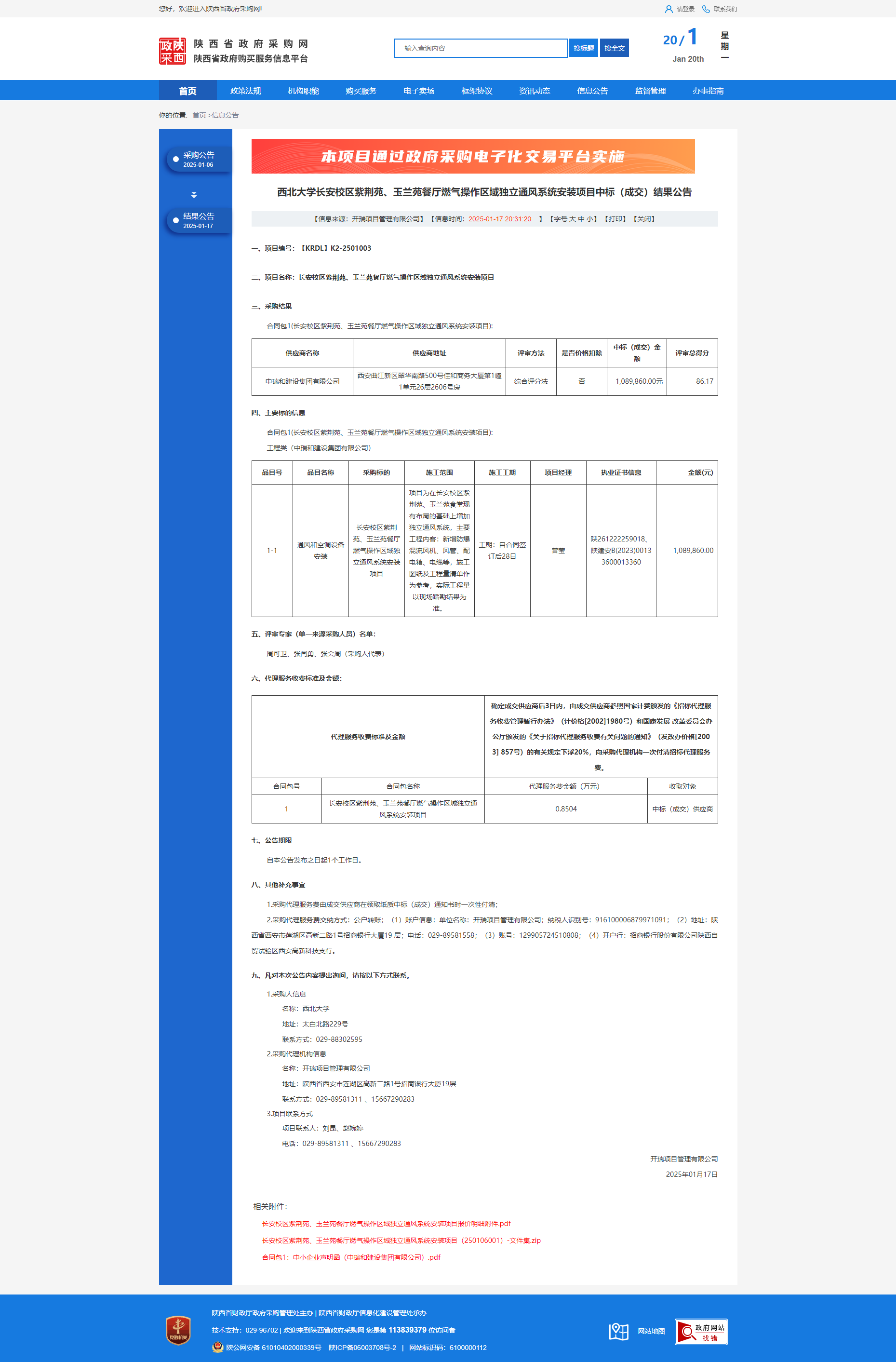 开云手机网页版登录入口长安校区紫荆苑、玉兰苑餐厅燃气操作区域独立通风系统安装项目中标(成交)结果公告