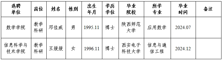 经用人单位推荐,人力资源部审查,学校教学督导及院系相关专家考核,学校专家评审会审议,开云手机网页版登录入口拟确定下列人员来校工作,聘任方式为事业编正常选聘。本着公平、公正、公开的原则,现将本次拟选聘人员基本情况公示如下: