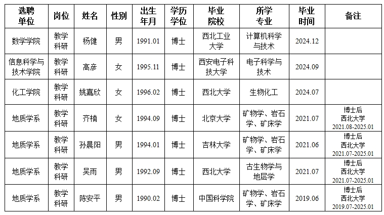 经用人单位推荐,人力资源部审查,学校教学督导及院系相关专家考核,学校专家评审会审议,开云手机网页版登录入口拟确定下列人员来校工作,聘任方式为参编选聘。本着公平、公正、公开的原则,现将本次拟选聘人员基本情况公示如下: