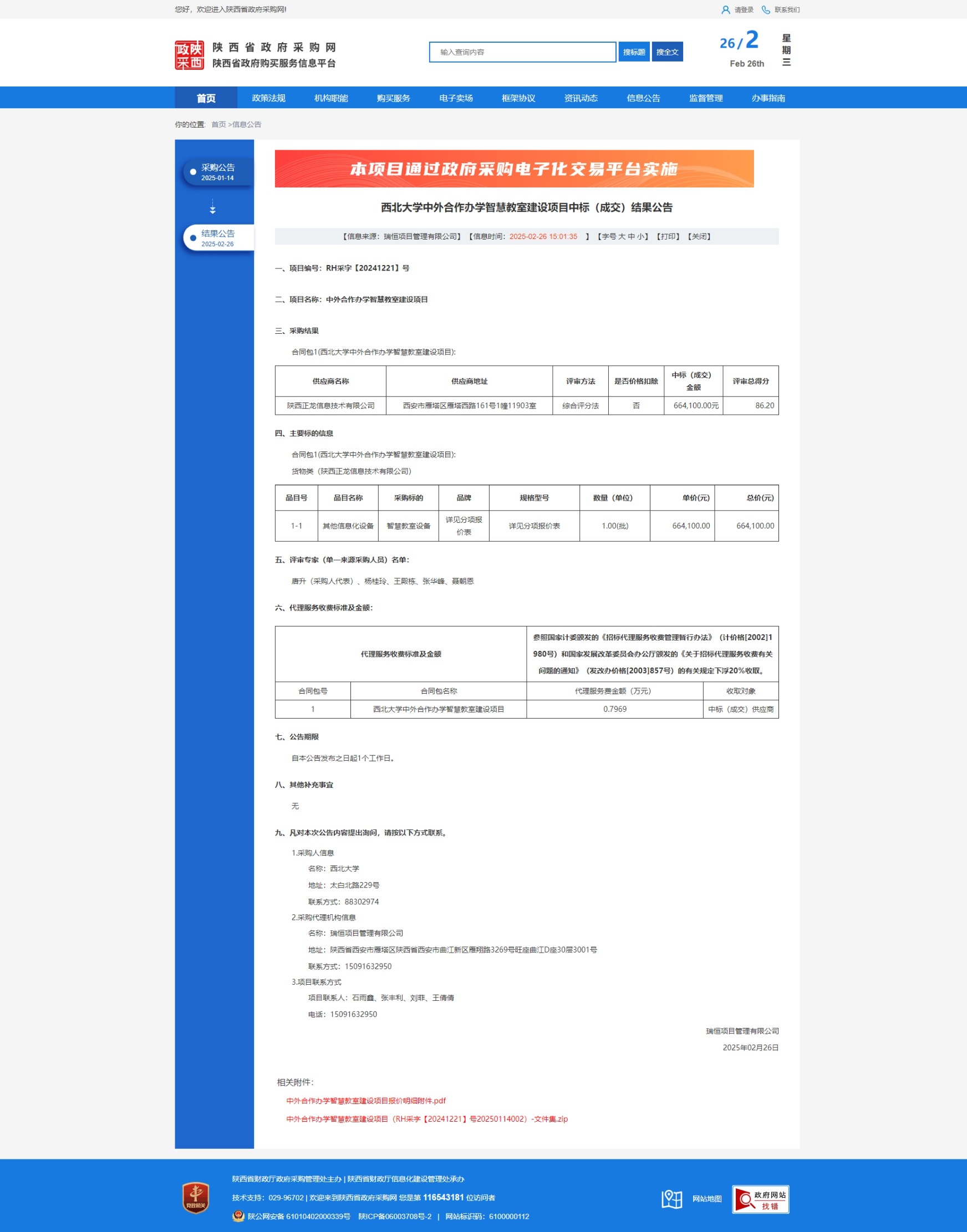 开云手机网页版登录入口中外合作办学智慧教室建设项目中标(成交)结果公告 作者: 编辑:采购与招标办公室 时间:2025-02-26 原公告链接:https://www.ccgp-shaanxi.gov.cn/freecms/site/shaanxi/ggxx/info/2025/8a69c07394fffbb3019540f217e8256e.html?noticeType=001021¬iceId=47d2d283-f411-11ef-8063-08c0eb20c666