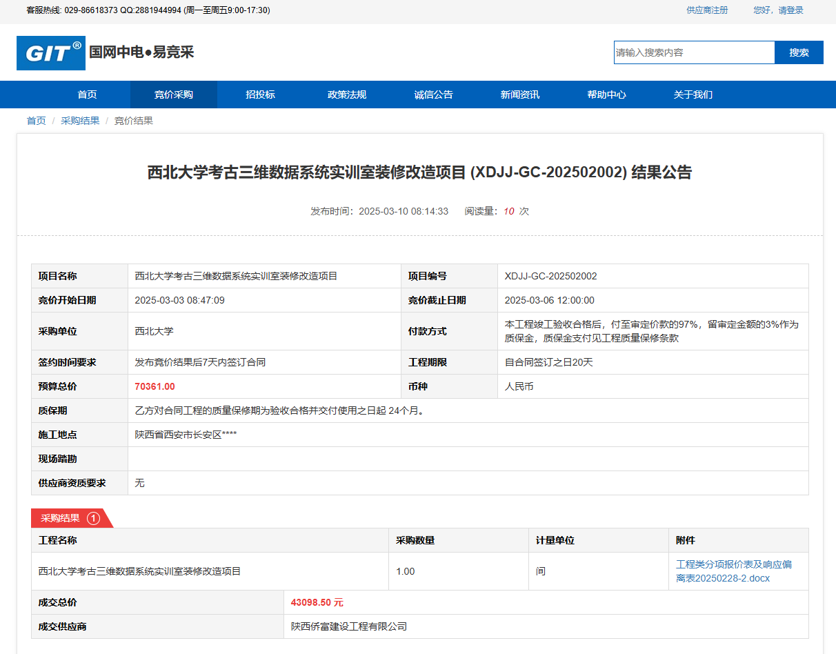 开云手机网页版登录入口考古三维数据系统实训室装修改造项目(XDJJ-GC-202502002)竞价结果公告 作者:采购与招标办公室 编辑: 时间:2025-03-10 原公告链接:https://www.ejingcai.com.cn/site/bidding/detail/16795