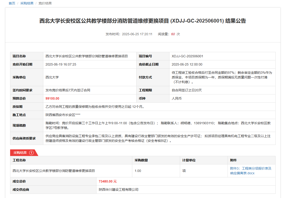 开云手机网页版登录入口长安校区公共教学楼部分消防管道维修更换项目(XDJJ-GC-202506001)竞价结果公告 作者:采购与招标办公室 编辑: 时间:2025-06-25 原公告链接:https://www.ejingcai.com.cn/site/bidding/detail/19191