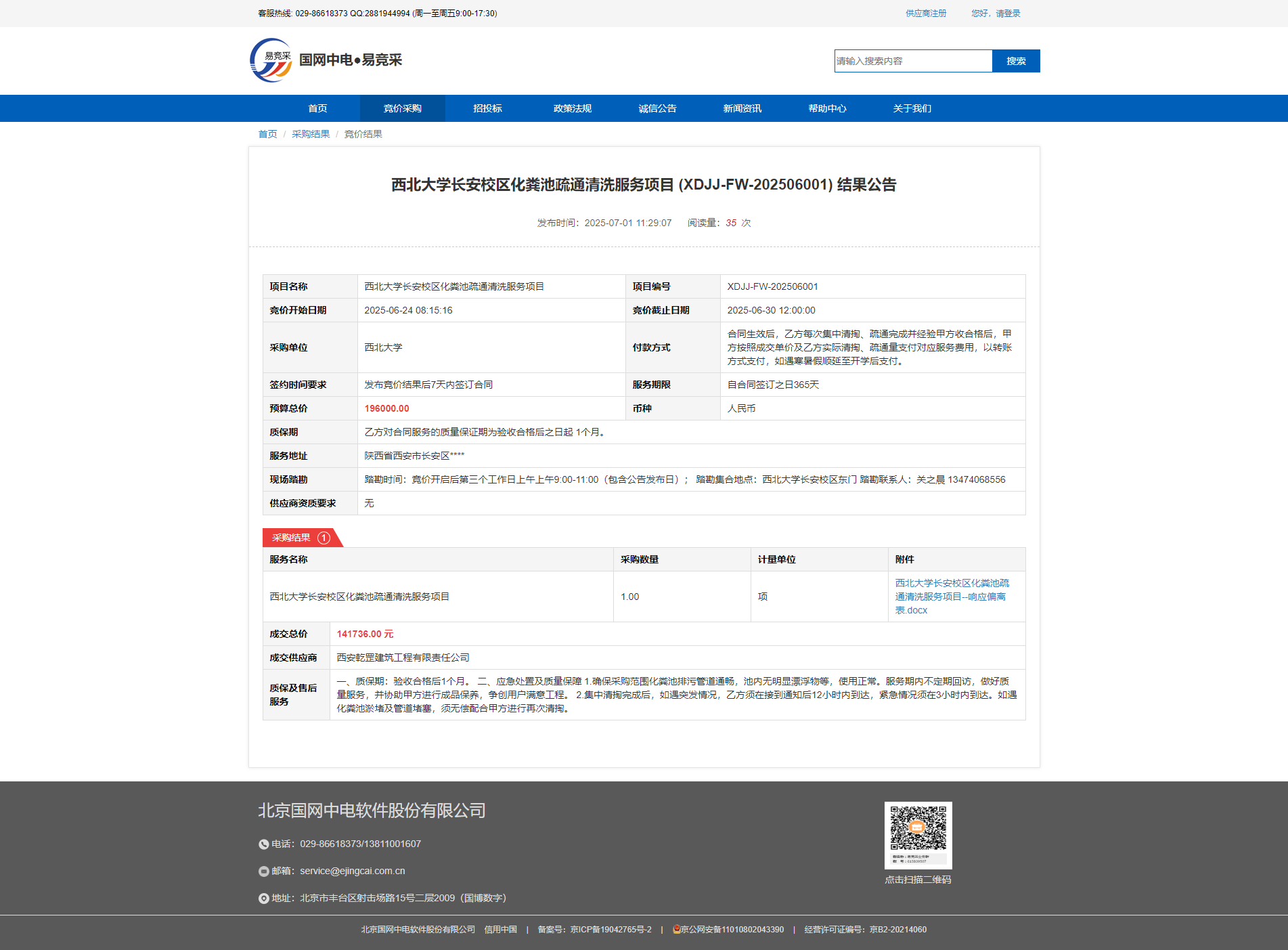 开云手机网页版登录入口长安校区化粪池疏通清洗服务项目 (XDJJ-FW-202506001) 结果公告