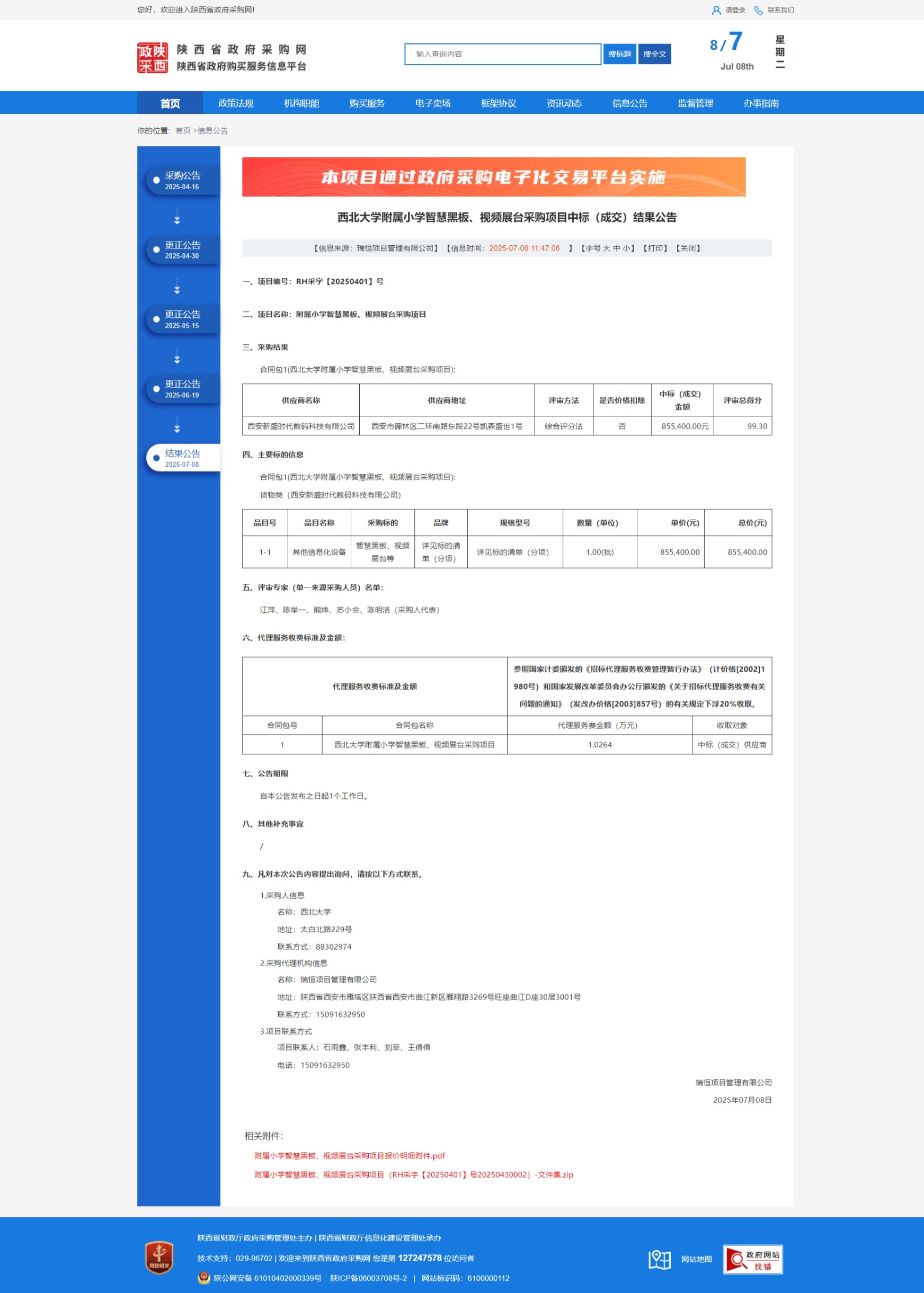 开云手机网页版登录入口附属小学智慧黑板、视频展台采购项目中标(成交)结果公告 作者: 编辑:采购与招标办公室 时间:2025-07-08 原公告链接:https://www.ccgp-shaanxi.gov.cn/freecms/site/shaanxi/ggxx/info/2025/8a69c0bc97db81390197e819c3dd4789.html?noticeType=001021¬iceId=37da8661-5bb0-11f0-8063-08c0eb20c666