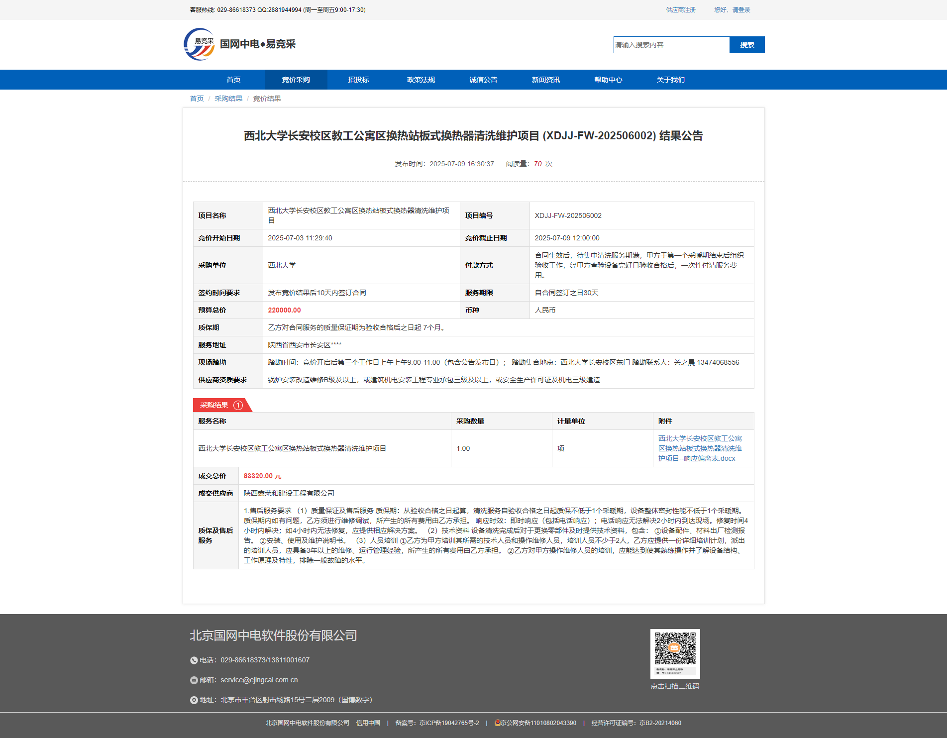 开云手机网页版登录入口长安校区教工公寓区换热站板式换热器清洗维护项目 (XDJJ-FW-202506002) 结果公告