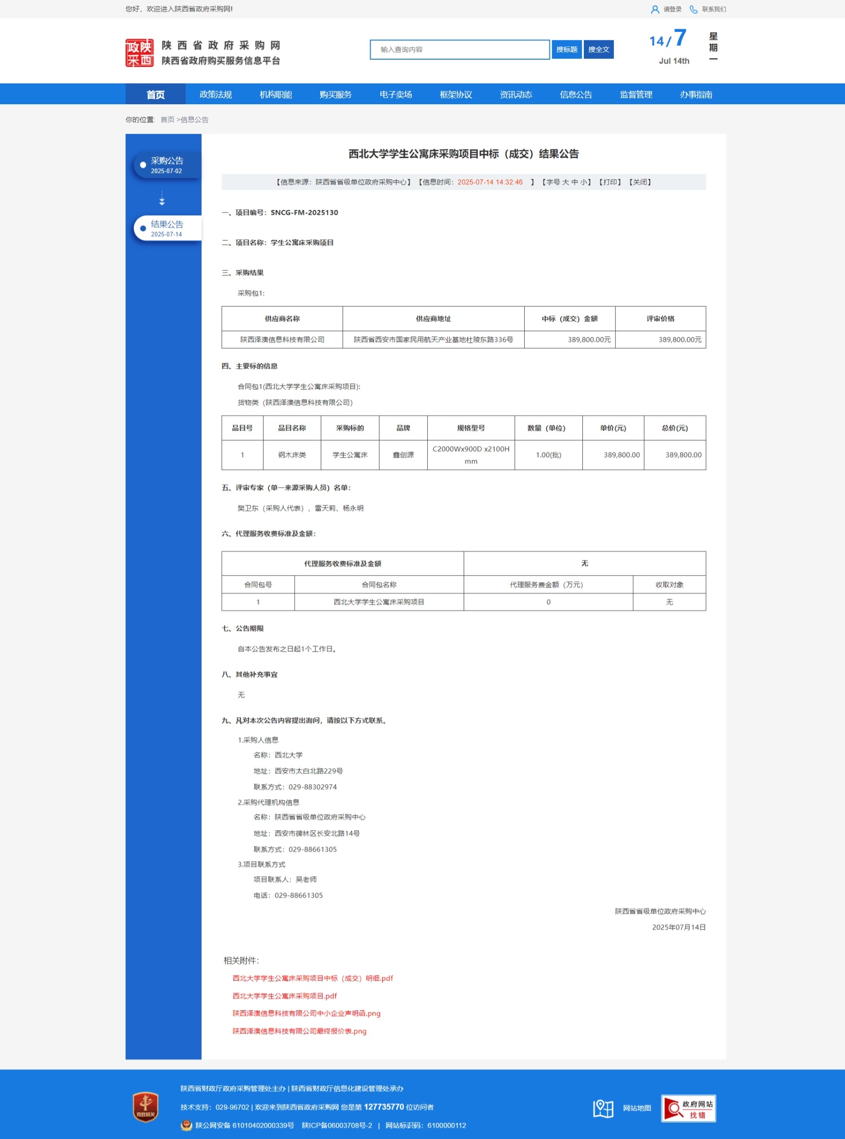 开云手机网页版登录入口学生公寓床采购项目中标(成交)结果公告 作者: 编辑:采购与招标办公室 时间:2025-07-14 原公告链接:https://www.ccgp-shaanxi.gov.cn/freecms/site/shaanxi/ggxx/info/2025/8a69c1d397de6c600198068c5fee4d43.html?noticeType=001023¬iceId=5dd2ddc8-607e-11f0-8063-08c0eb20c666