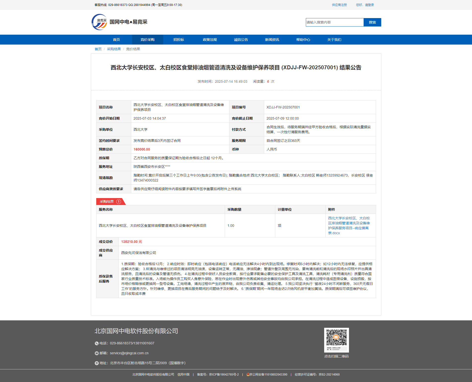 开云手机网页版登录入口长安校区、太白校区食堂排油烟管道清洗及设备维护保养项目 (XDJJ-FW-202507001) 结果公告 作者:采购与招标办公室 编辑:张旭龙 时间:2025-07-14 原链接地址