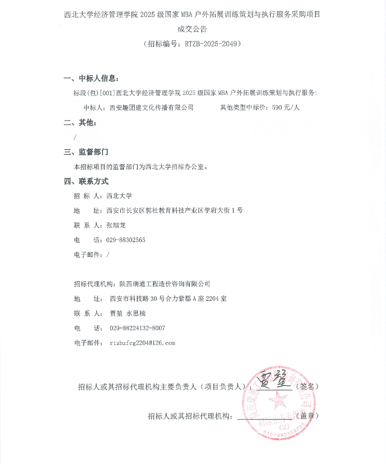 开云手机网页版登录入口经济管理学院2025级国家MBA户外拓展训练策划与执行服务采购项目成交公告