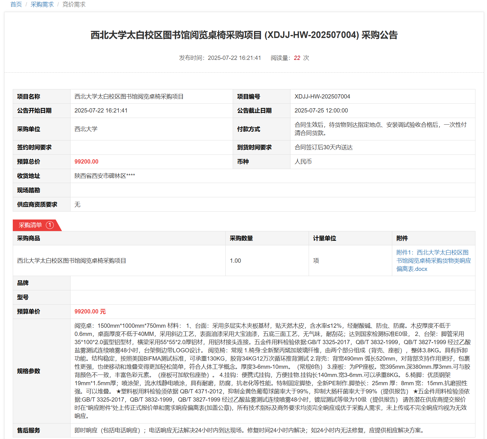 开云手机网页版登录入口太白校区图书馆阅览桌椅采购项目(XDJJ-HW-202507004)竞价采购公告 作者:采购与招标办公室 编辑: 时间:2025-07-22 原公告链接:https://www.ejingcai.com.cn/site/bidding/detail/19667