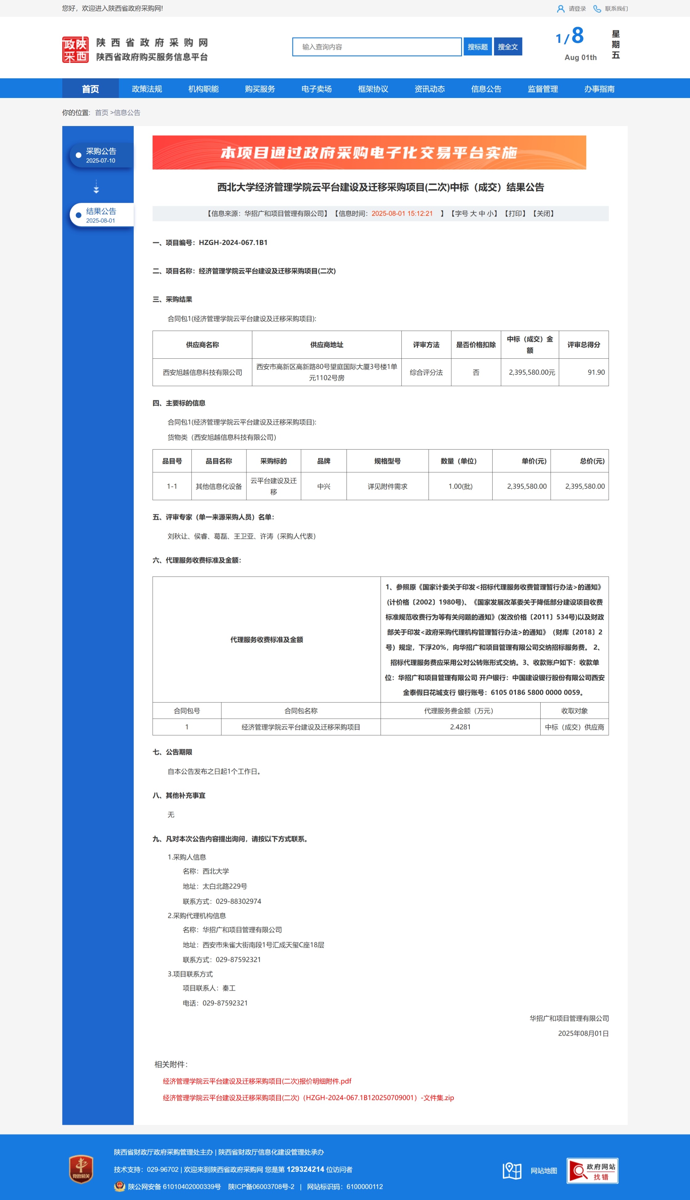 开云手机网页版登录入口经济管理学院云平台建设及迁移采购项目(二次)中标(成交)结果公告 作者: 编辑:采购与招标办公室 时间:2025-08-01 原公告链接:https://www.ccgp-shaanxi.gov.cn/freecms/site/shaanxi/ggxx/info/2025/8a69c6959860f2ce01986101532605f6.html?noticeType=001021¬iceId=e8cedee8-6ea8-11f0-8063-08c0eb20c666