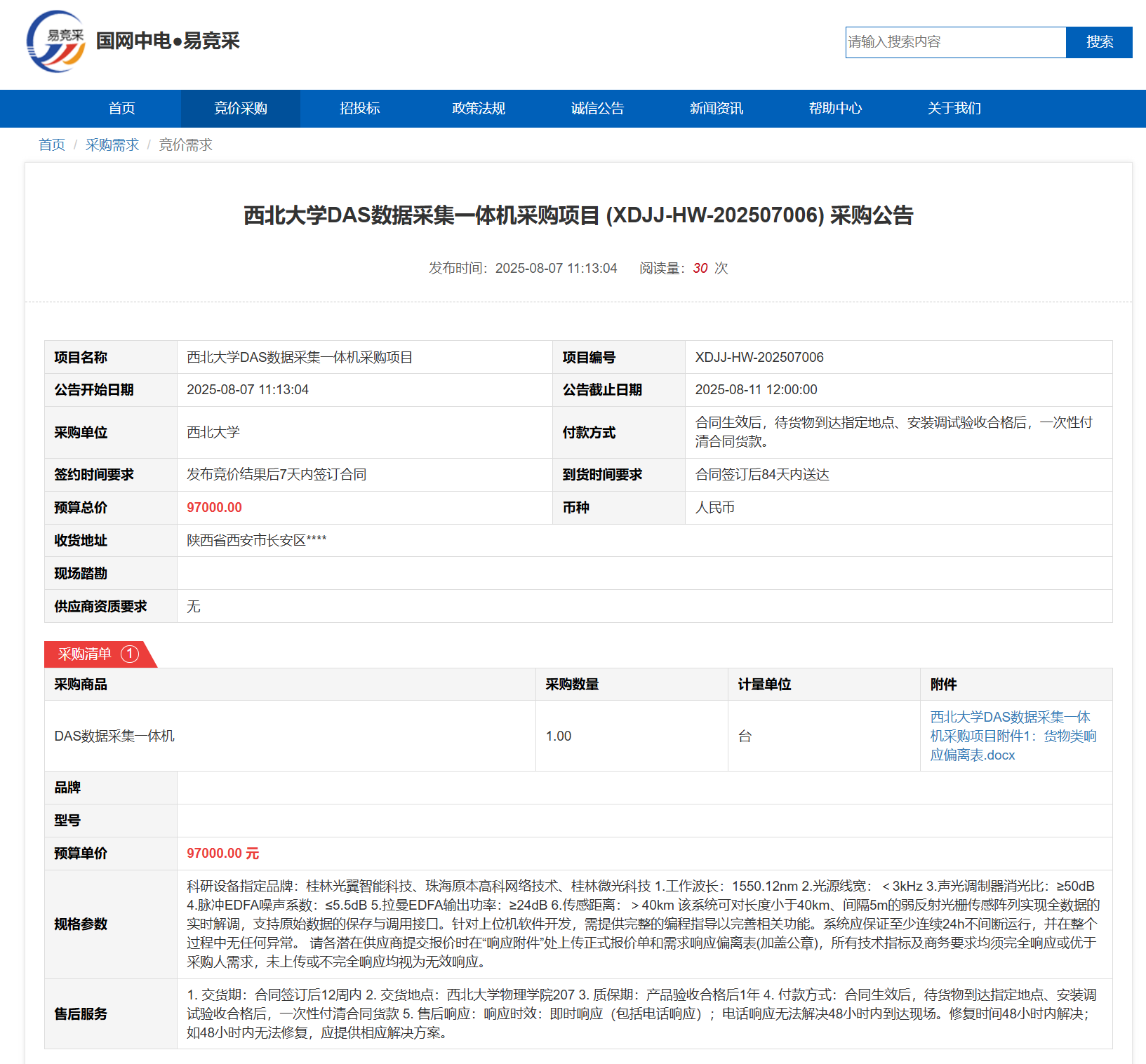 开云手机网页版登录入口DAS数据采集一体机采购项目(XDJJ-HW-202507006)竞价采购公告