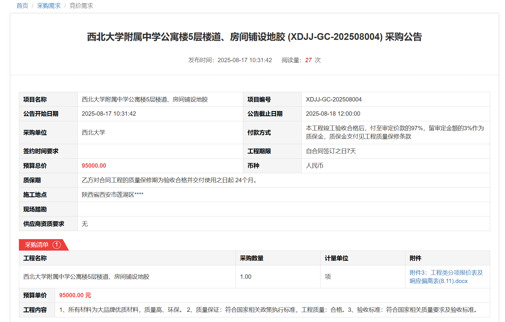 开云手机网页版登录入口太白校区科研楼公共区域、教学七号楼室内照明设施更换(XDJJ-GC-202508001)竞价结果公告