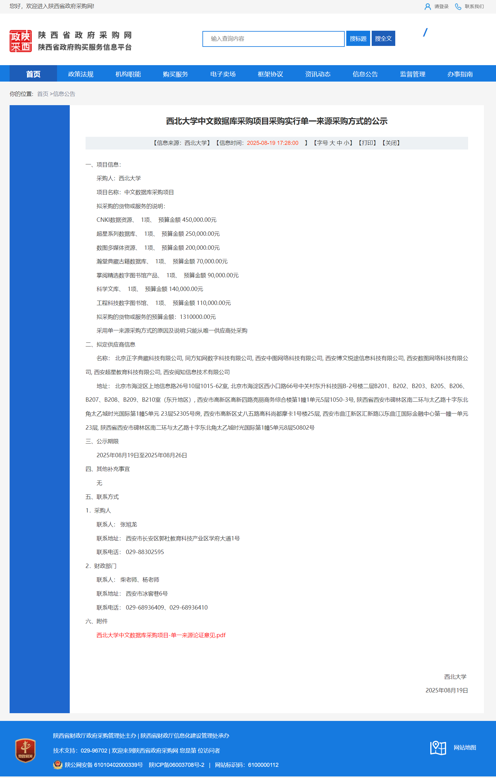 开云手机网页版登录入口中文数据库采购项目采购实行单一来源采购方式的公示