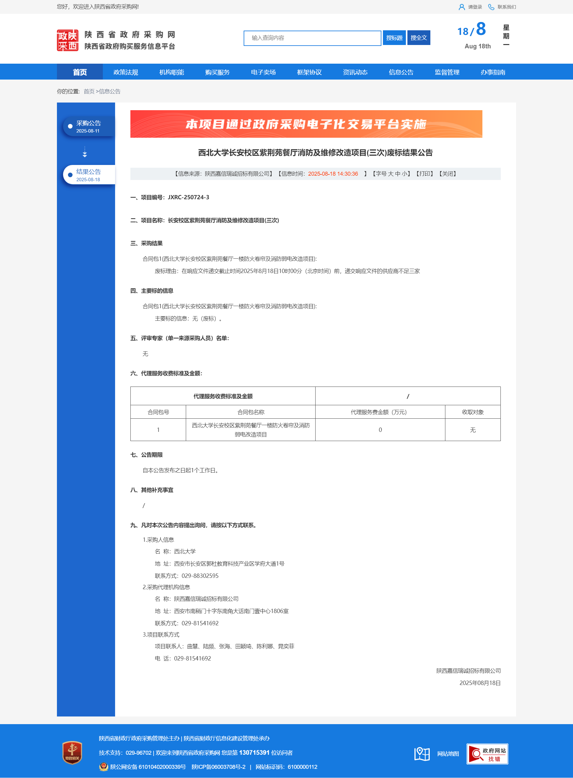 开云手机网页版登录入口长安校区紫荆苑餐厅消防及维修改造项目(三次)废标结果公告