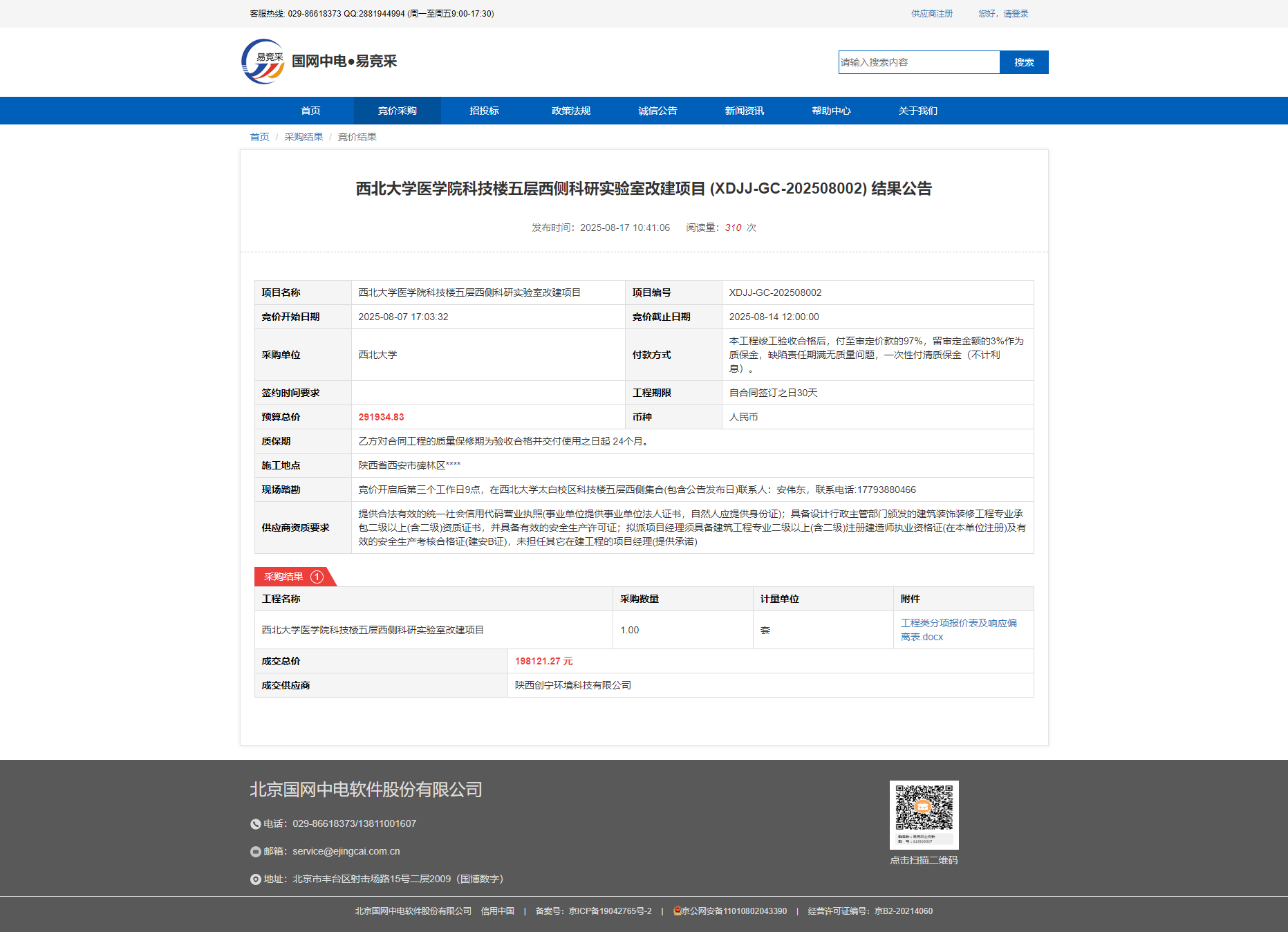 开云手机网页版登录入口太白校区科研楼公共区域、教学七号楼室内照明设施更换(XDJJ-GC-202508001)竞价结果公告