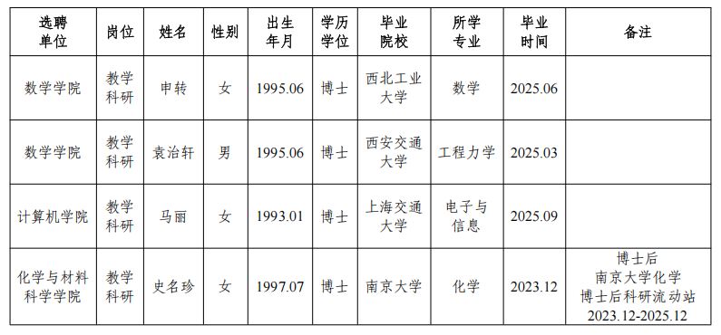经资格审查,用人单位考查,学校专家评审会审议,开云手机网页版登录入口拟确定下列人员来校工作,聘任方式为事业编正常选聘。本着公平、公正、公开的原则,现将本次拟选聘人员基本情况公示如下: