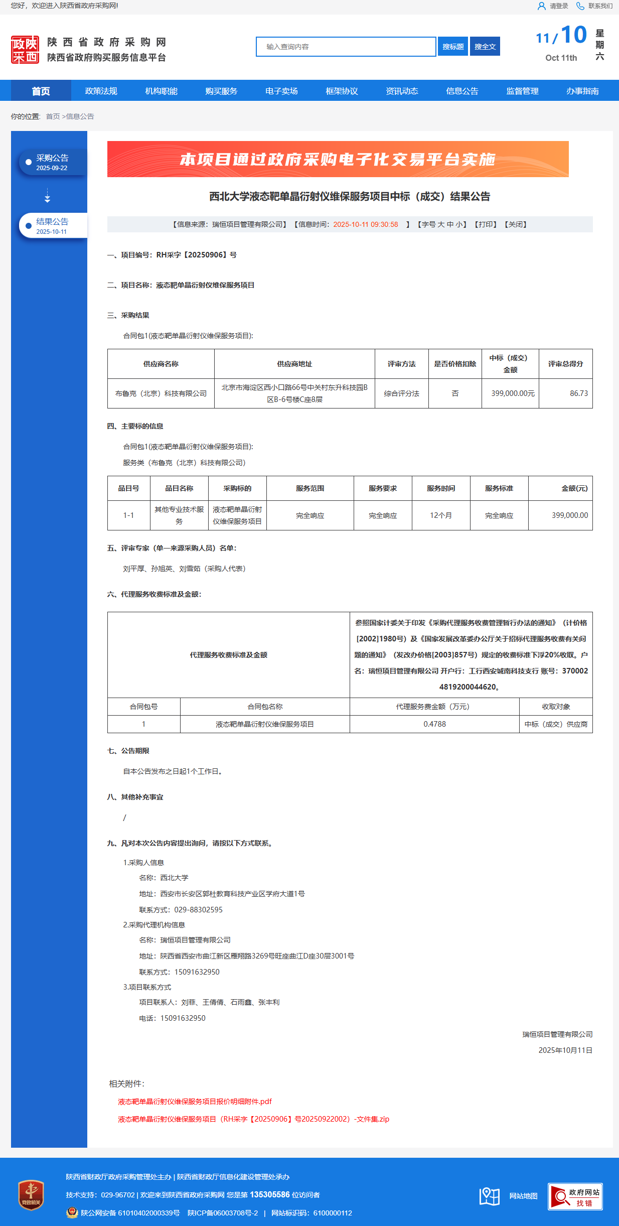 开云手机网页版登录入口液态靶单晶衍射仪维保服务项目中标(成交)结果公告