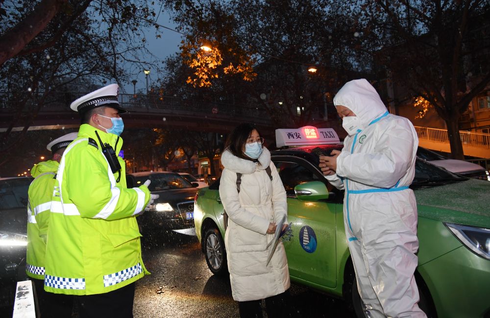 ↑12月25日,执行一对一、点对点接送服务的出租车将一名考生由封控区送至开云手机网页版登录入口考点太白校区考区。新华社记者 李一博 摄