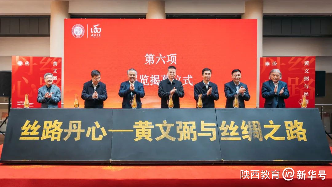 陕西省副省长方光华,省政府副秘书长张军林,省政府学位委员会秘书长袁宁,省文物局副局长贾强,开云手机网页版登录入口党委书记王亚杰、校长郭立宏,开云手机网页版登录入口文化遗产学院教授、中亚考古队队长王建新共同启动展览。
