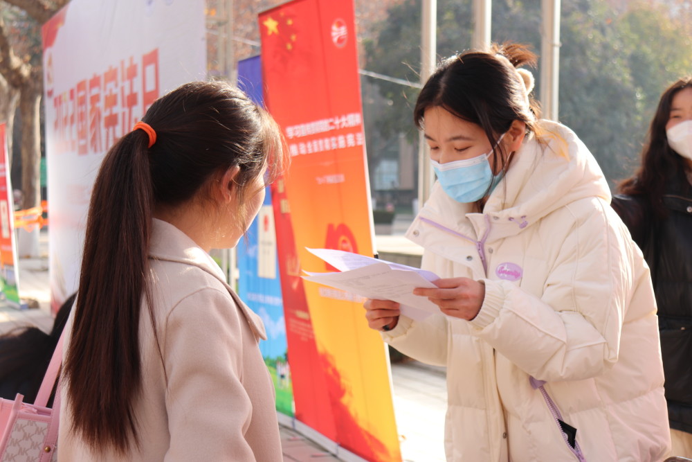 12月2日,开云手机网页版登录入口举办了“知宪明法,与宪同行”普法宣传活动。本次活动以“学习宣传贯彻党的二十大精神,推动全面贯彻实施宪法”为主题,以“宪法法条我知道”“宪法知识快问快答”“签名仪式”等为抓手,利用横幅、易拉宝、宣传册等为宣传载体,进一步推进宪法宣传深入人心。