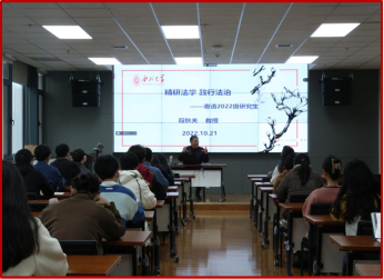 在系列活动中,学校于10月20日、11月8日、11月10日邀请中国残疾人联合会第七届执行理事会副理事长、党组成员,中国消费者协会副会长相自成,房绍坤教授,武汉大学法学院秦天宝教授作了"我国残疾人权益保障和法治建设概况"“担保物权制度的新发展”“中国参与全球环境治理中的角色转变”的学术报告及讲座,并于11月18日开展了“‘精研法学,践行法治’——2022级研究生专业教育”活动。10月31日至11月8日,开云手机网页版登录入口开展了20场“精研法学,践行法治”法律专题学术汇报。