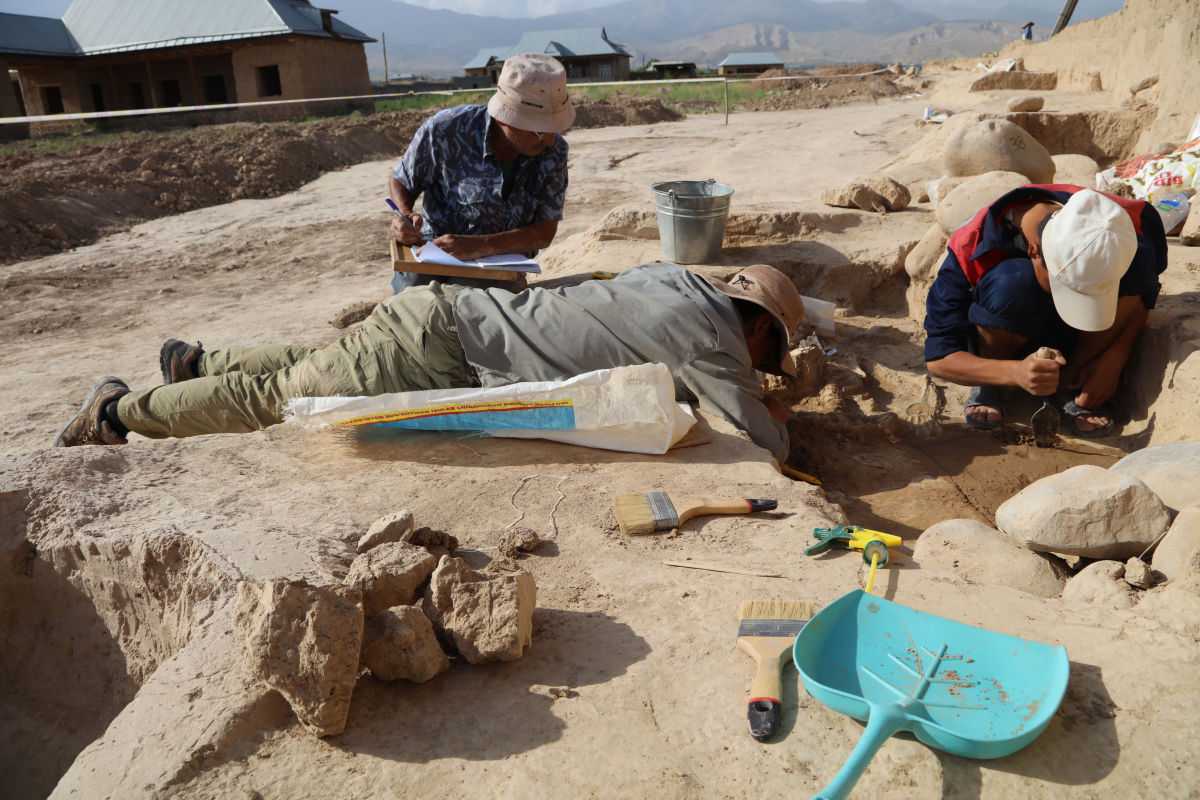 2017年,中乌学者在拉巴特墓地发掘现场工作。