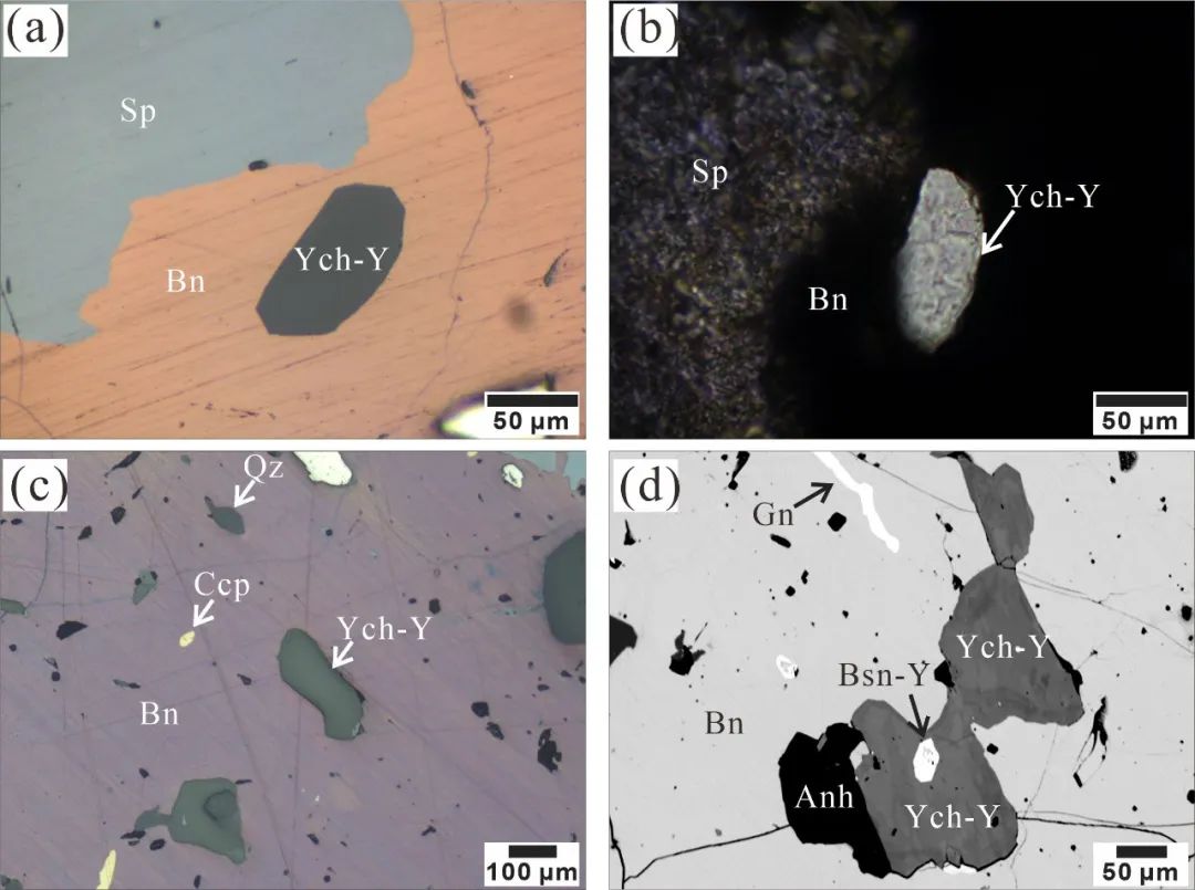 毓川碳钇矿镜下照片. Ych-Y:毓川碳钇矿