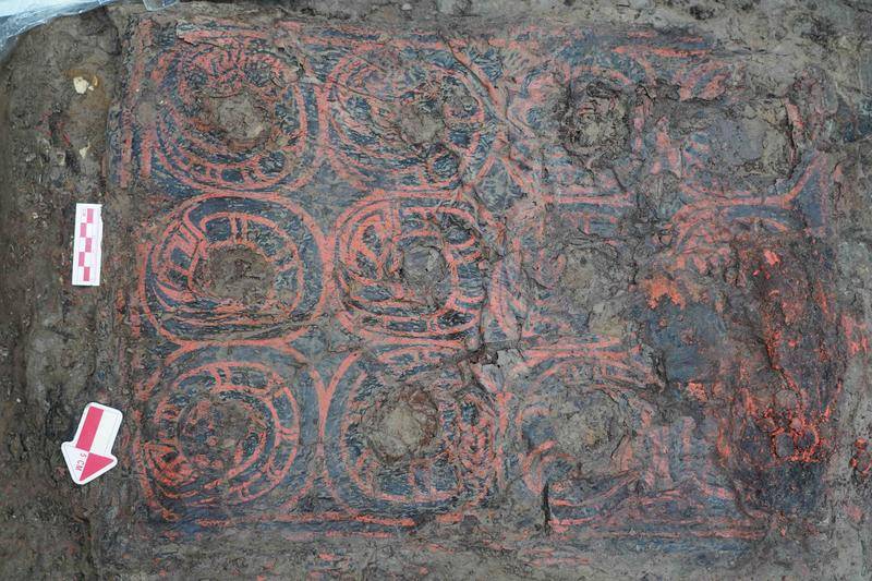 值得关注的是,上庙墓地围沟外东部还发现有甲字形大墓十余座,另有中小型墓葬百余座。根据探测的情况,这些甲字形大墓等级更高,但年代可能更晚一些。这些大墓和大型围沟的距离不到100米,还有自己的小围沟,小围沟把这些大墓分开了。
