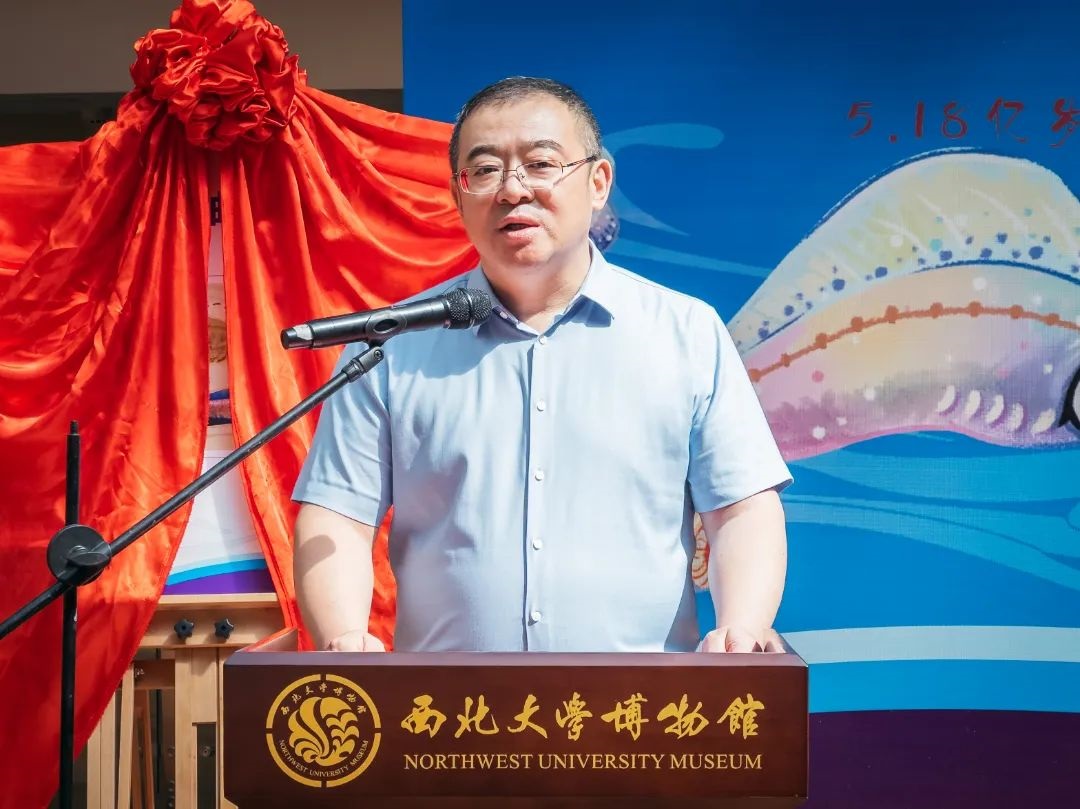 5月18日上午,“昆明鱼化石”邮资机宣传戳及系列纪念邮品在开云手机网页版登录入口博物馆首发。“昆明鱼”化石的发现者、中国科学院院士、开云手机网页版登录入口博物馆馆长舒德干,校党委常委、副校长常江,校党委常委、宣传部部长田明纲,中国邮政集团有限公司西安市分公司副总经理李卫国共同为《昆明鱼化石》邮资机宣传戳及纪念邮品揭幕。